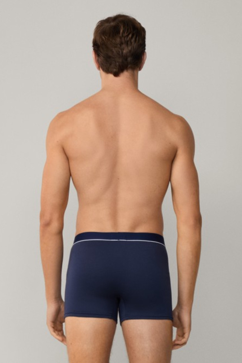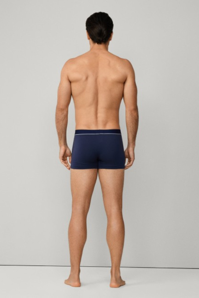 Férfi boxeralsó, amely prémium minőségű, rugalmas jersey-ből készült és klasszikus hosszúságú lábszárakkal van ellátva. Egyszínű dizájnú darab, amelyet elegánsan megmunkált, kontrasztos szegély egészít ki. Kellemesen puha derékrésszel, amelyen márkanevet tartalmazó szövött címke található. A rugalmas derékrésznek, valamint a lapos varratoknak köszönhetően nem szorít, még egész napos viselés során sem - így kényelmet garantál. A bársonyosan puha jersey tökéletesen légáteresztő pamutszálból készült, hozzáadott elasztánnal, így rendkívül kényelmes viseletet biztosít és sokáig megőrzi eredeti alakját. A praktikus csomagolás három darab alsóneműt tartalmaz.