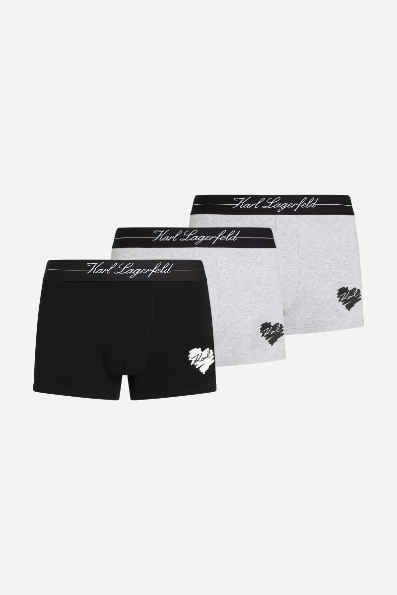 Férfi boxeralsó, amely egyszínű kivitelezésű. Hotel Karl logóval és ikonikus, szív alakú Karl Signature logóval, amely tökéletesen kiegészíti a kellemesen puha derékrészt. A kiváló minőségű darab klasszikus hosszúságú szárakkal van ellátva, előnyös kialakítású és garantálja a kényelmet, egész napos viselet során. A prémium minőségű pamutjersey tökéletes légáteresztő képességével tűnik ki és a hozzáadott elasztánszálnak köszönhetően rendkívül rugalmas és sokáig megőrzi majd eredeti alakját. A csomagolás három darabot tartalmaz ebből az alsóneműből.