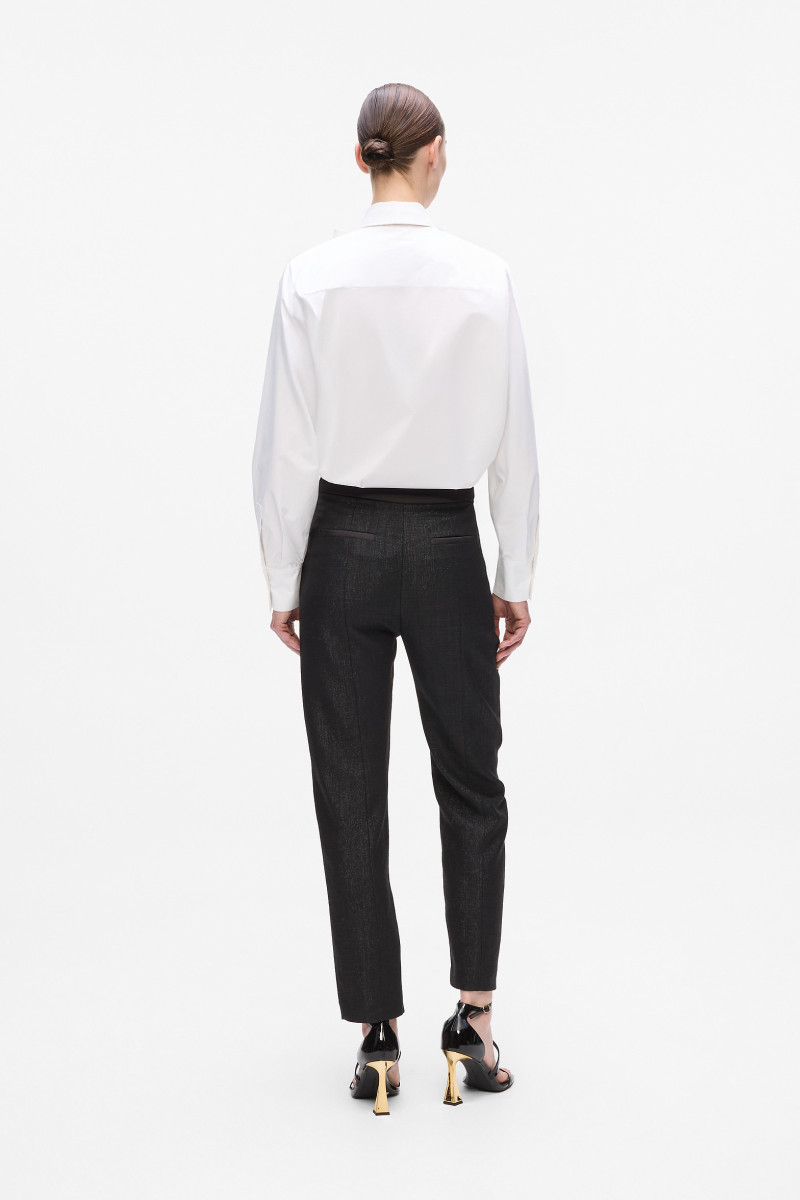 Női pamut ing egyenes szabással, amelyet feltűnő, levehető masni díszít. Egyszínű dizájn, gombos záródással, melyet Karl Signature logó hímzés egészít ki. 100% pamut, finom poplin anyagban készült, ami garantálja a tökéletes légáteresztést, könnyedséget, kellemes viseletet és egyszerű karbantartást. Kiválóan kombinálható darab, amely stílusosan kiegészíti elegáns és formális öltözékét.
