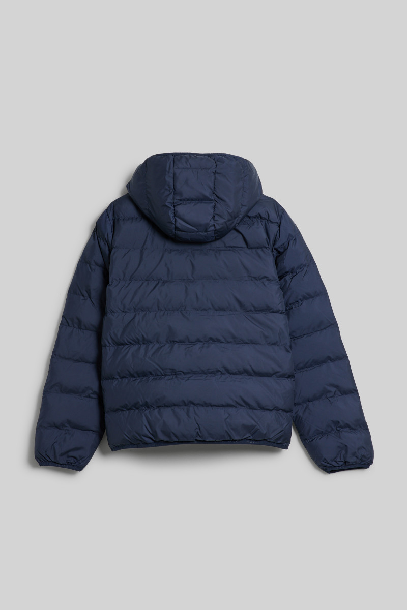 Gyermek steppelt dzseki, kapucnival. Egyenes szabású és cipzárral záródó. Praktikus, magasabb állógallérral van ellátva. Ikonikus márkajelzéssel a mellkason és két oldalzsebbel. A vízlepergető hatású felületi anyag erős, mégis könnyű, prémium minőségű szálból készült, amely ellenáll a szélnek. Az üreges szálas töltet kellemesen melegen tart és alacsony karbantartási igényt biztosít. A dzseki klasszikus módon mosható. Nagyon kényelmes darab, amely a szabadidős öltözékek nélkülözhetetlen részévé válik.