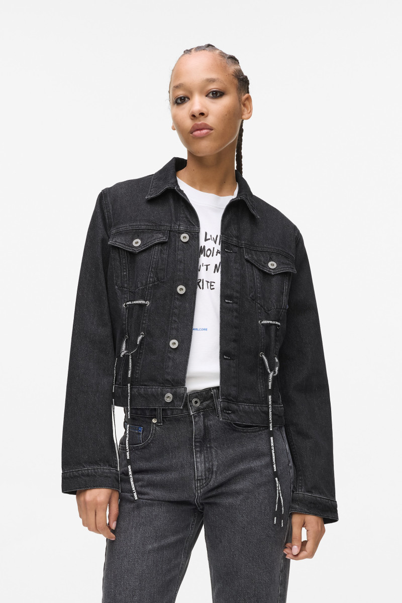 DZSEKI KARL LAGERFELD JEANS KLJ LACE TIE DENIM JACKET STONE WASHED BLACK