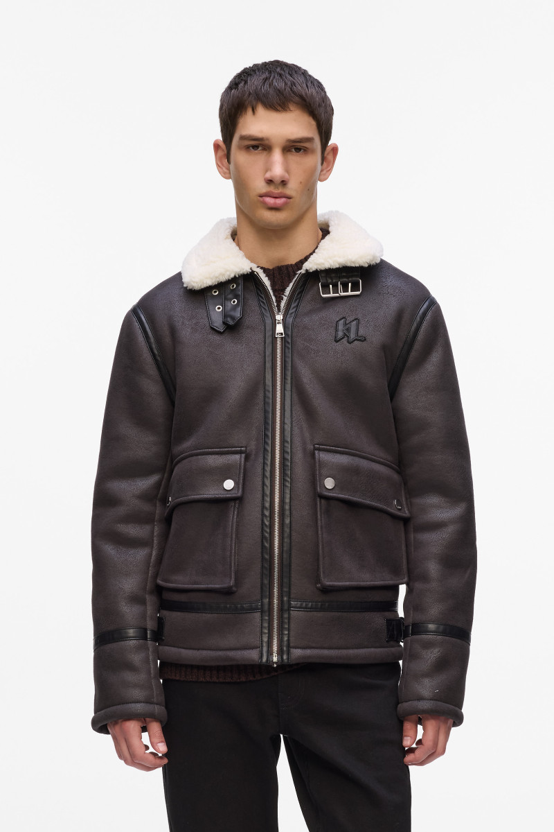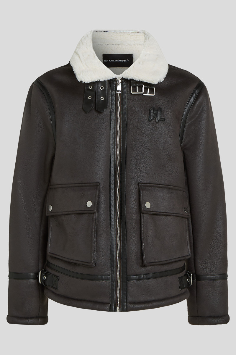 DZSEKI KARL LAGERFELD KL MONOGRAM SHEARLING JACKET BLACK COFFEE
