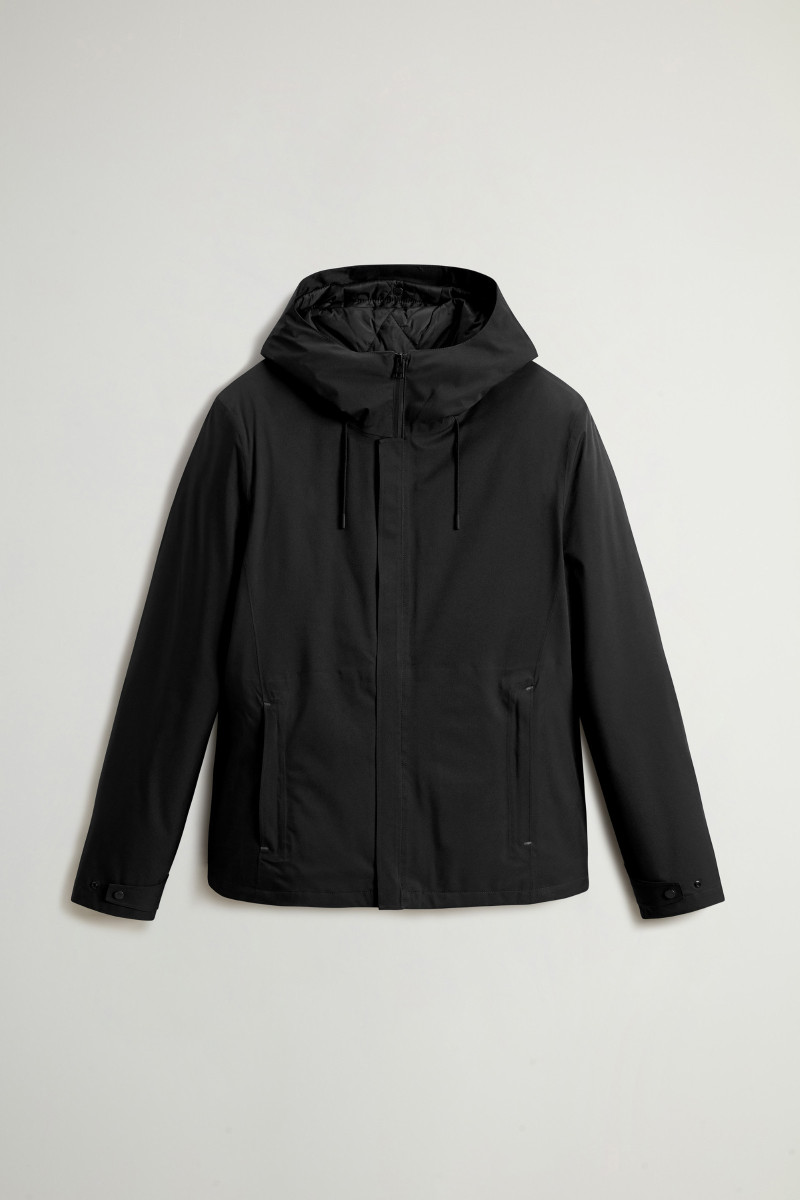 Multifunkciós férfi dzseki 3 az 1-ben, tökéletesen illeszkedő, egyenes szabással és kapucnival. E rafinált darab felső része vízálló, kétirányú cipzárral záródik, amit patentos légó fedi. Két oldalsó zseb, állítható mandzsetták és a jobb láthatóság érdekében reflexív részletek a oldalain találhatóak. A dzseki víz- és szélálló anyagból készült, amely kiváló lélegzőképességgel és kellemes puhasággal büszkélkedhet. Az eltávolítható belső rész egy kétoldalú dzseki, amelynek egyik oldalát elegáns steppelés díszíti, sima mellzsebbel kiegészítve. Mindkét réteg, amelyek önmagukban is hordhatóak a kifinomult kidolgozásnak köszönhetően, középső cipzárral, a kapucnin patenttel és a galléron és mandzsettákon poutkákkal van összekötve. Nagyon kényelmes alapdarab a sportosan laza stílushoz, amely funkcionális elemeket és stílusos megjelenést ötvöz.