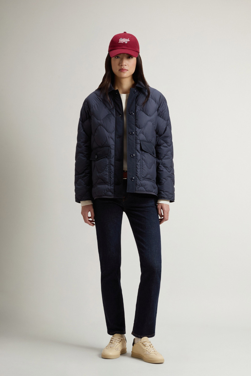 Női prošívaná dzseki nagyon könnyű anyagból, amely szélálló és vízlepergető felületkezeléssel rendelkezik. Laza szabású, nyaknál gallérral, enyhén ívelt alsó szegéllyel és gombokkal záródik, kiegészítve oldalsó csúszózsebekkel és két kéznyílással. Az anyagösszetétel maximális könnyedséget és melegséget garantál a minőségi kacsa pehelytöltettel, 90/10 arányban. Ez a sokoldalú darab stílusosan kiegészíti tavaszi öltözékedet.