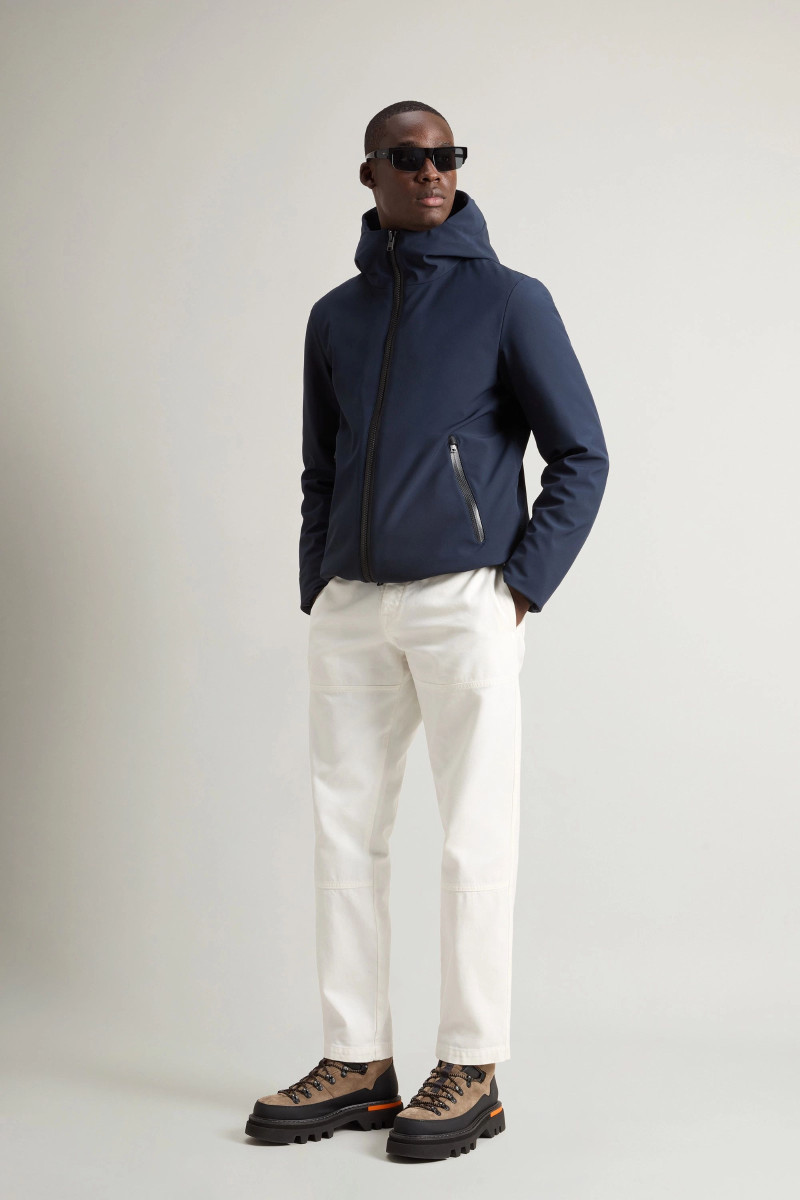 Téli férfi dzseki, amely könnyű és rugalmas softshell anyagból készült, valamint ellenáll az esőnek és a szélnek. A kétirányú cipzárral záródó darab egyenes szabású és elasztikus szegélyekkel van kiegészítve. Cipzáras, oldalsó ferde zsebekkel. Az állítható kapucnin Woolrich logóval és a steppelt belső térben egy belső zsebbel. 90/10 arányban tartalmaz kacsatoll töltet, így kellemesen melegen tart és kényelmes viseletet biztosít. Remekül megmunkált darab, amely stílusosan kiegészíti majd téli öltözékét.
