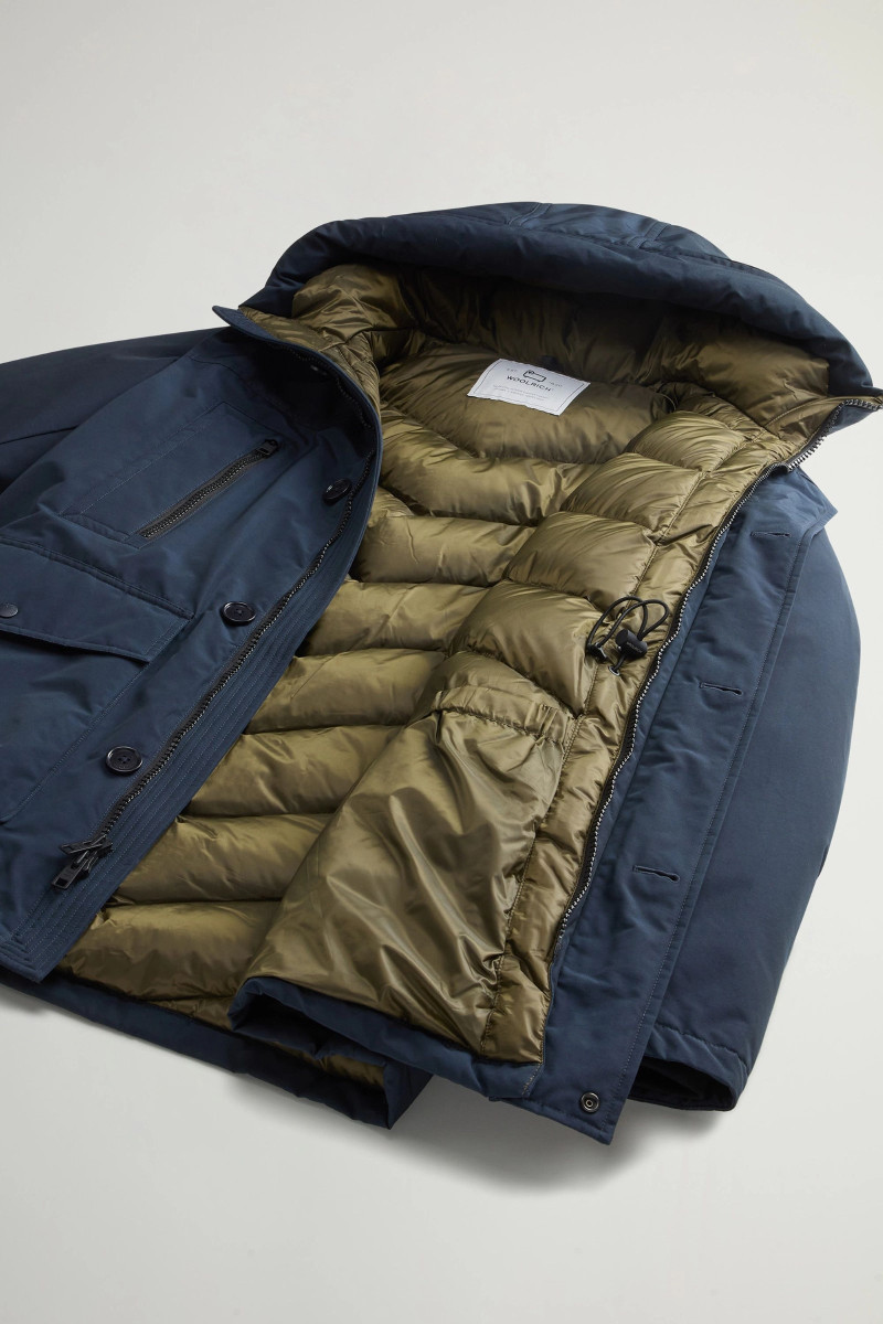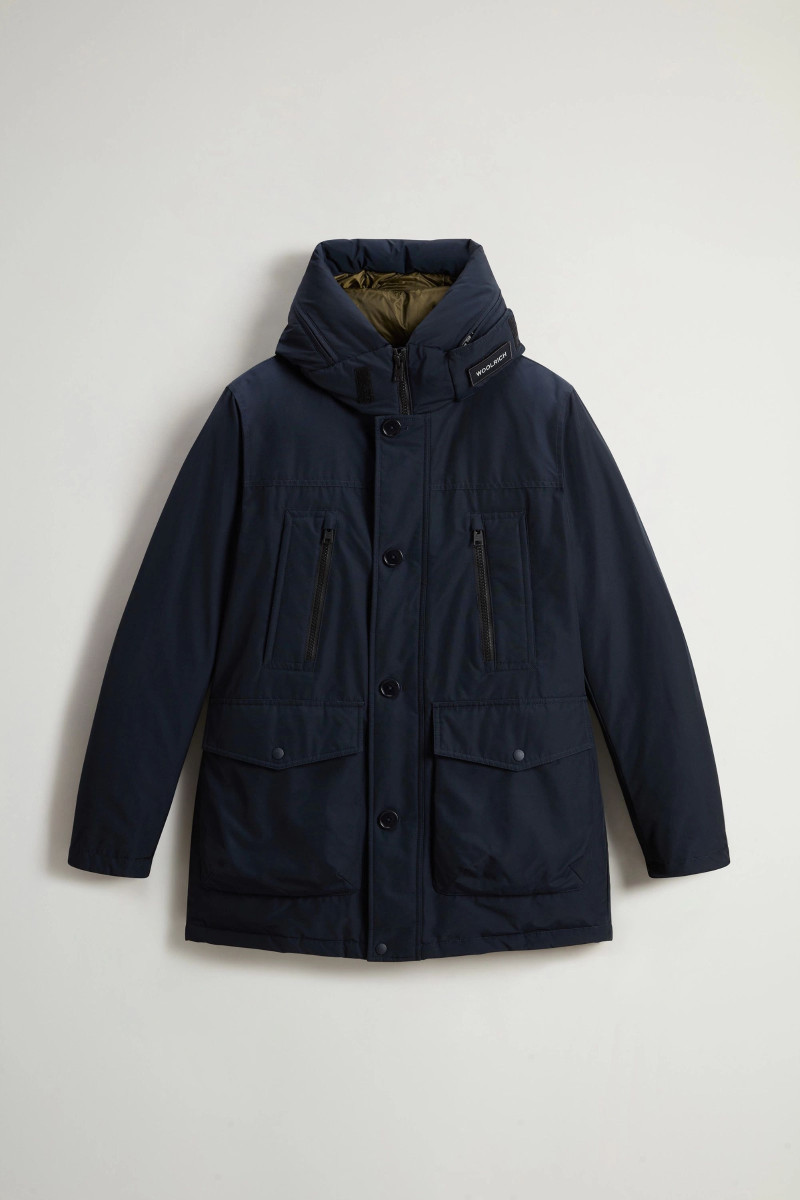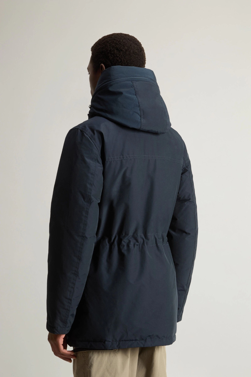 Téli férfi dzseki, amely matt pamut felületű és ellenáll az esőnek, valamint a szélnek. Az egyenes szabású darabot cipzáras záródás egészíti ki, amelyet gombos hajtóka fed. Az ujjakon elasztikus mandzsettákkal, a mellkason két zsebbel, valamint dupla oldalzsebekkel. A kapucni mérete cipzárral állítható és mutatós, rejtett Woolrich logó teszi különlegessé. A steppelt belső térben egy belső zsebbel. 90/10 arányban tartalmaz kacsatoll töltetet, így tökéletes légáteresztő képességet és kellemes viseletet garantál. Nagyon stílusos darab, amelyre a leghidegebb napokon is számíthat majd.
