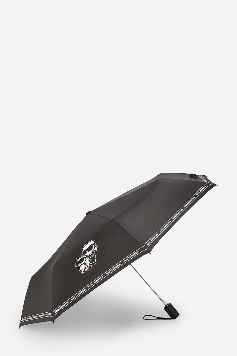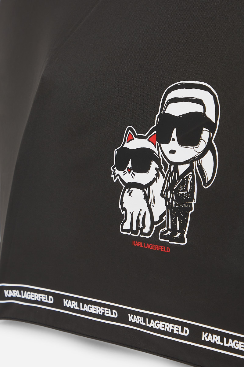 Univerzális, összecsukható esernyő, amely feltűnő kiegészítőjévé válik táskájának vagy kézitáskájának. Az ikonikus, fekete-fehér dizájnú darabot bájos IKON Karl grafika és kontrasztos KARL LAGERFELD logós szegély egészíti ki. Karl logóval díszített, kényelmes fogantyúval. Az esernyő védőborítással és automatikus nyitással ellátott. Egy felejthetetlenül stílusos kiegészítő, amely garantálja, hogy az esős napok sem fogják majd elrontani hangulatát.
