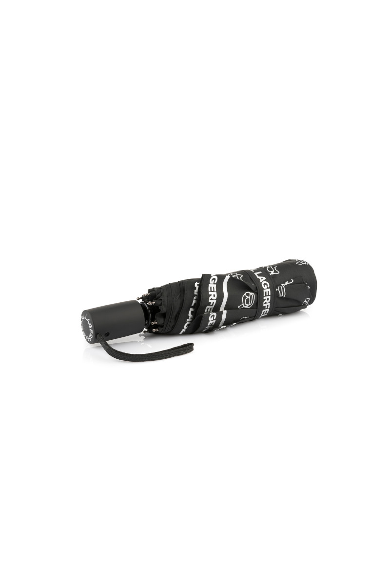 Sokoldalúan felhasználható, összecsukható esernyő, amely feltűnő kiegészítőjévé válik táskájának vagy kézitáskájának. A K/Ikonik és Choupette logókkal díszített, klasszikus dizájnú darabot kontrasztos szegélyek egészítik ki. Az esernyő védőborítással és automatikus nyitódással ellátott. Rendkívül stílusos kiegészítő, amelynek köszönhetően az esős napok sem fogják majd elrontani hangulatát.