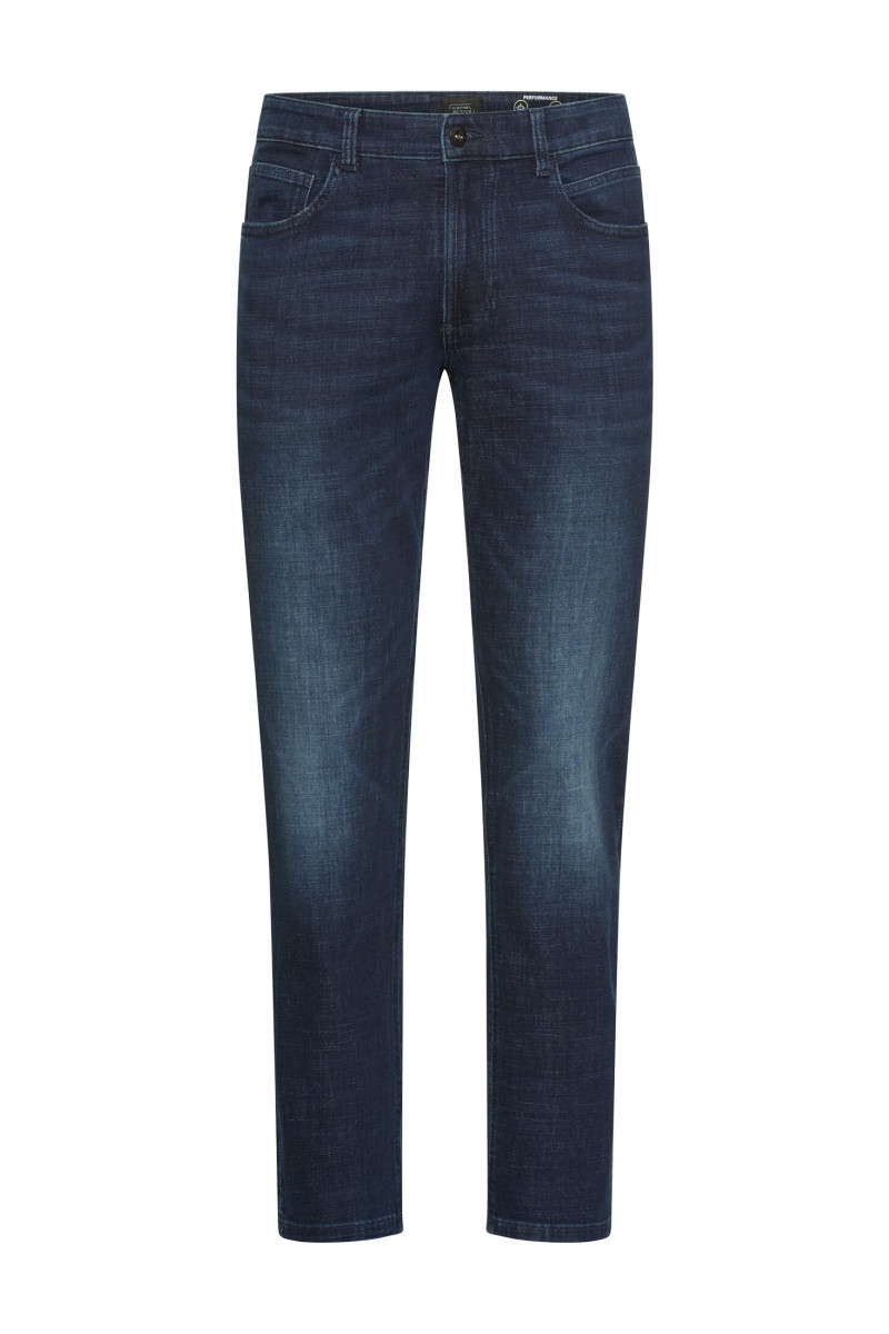 Férfi farmernadrág rendkívül rugalmas és különösen puha farmer anyagból. A nagyon szűk szabású szárakat klasszikus derékmagasság egészíti ki, amely jellegzetes gombos és cipzáras záródással rendelkezik. Nem hiányoznak a övbújtatók sem, valamint a bőr címke, amely a hátsó zseb felett van elhelyezve, a Camel Active márka logóval nyomtatva rá. Az anyagösszetétel tartós, ízlésesen összeállított szövetből áll, magas minőségű pamutszálakból és elasztán keverékéből, ami garantálja a tökéletes illeszkedést és nagyon kényelmes viseletet. Könnyen kombinálható, stílusosan megjelenő darab a laza-elegáns öltözékekhez, amelyet biztosan meg fog szeretni.