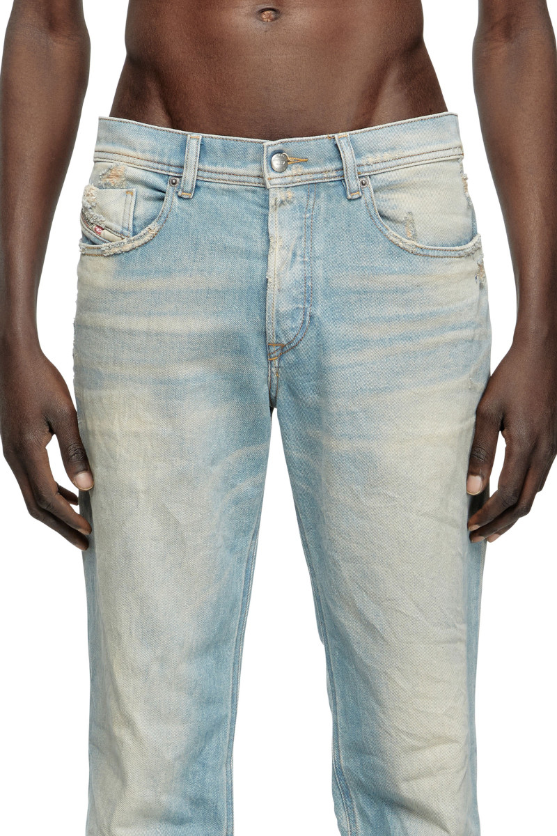 Férfi egyenes szabású farmer, enyhén szűkülő szárral. A mosott, középmagas derékkal, öt zsebbel és övhurokkal rendelkező designt gombos zárás és az első ötödik zsebre varrt ikonikus DIESEL INDUSTRY logócímke egészíti ki. A farmer világoskék árnyalatú, a zsebeken és a szegélyeken kisebb kopásokkal. A tágas, de nem túl bő szabás maximális viselési kényelmet és összetéveszthetetlenül stílusos megjelenést biztosít az öltözködéshez.