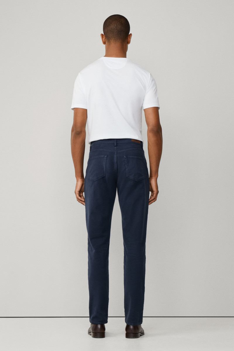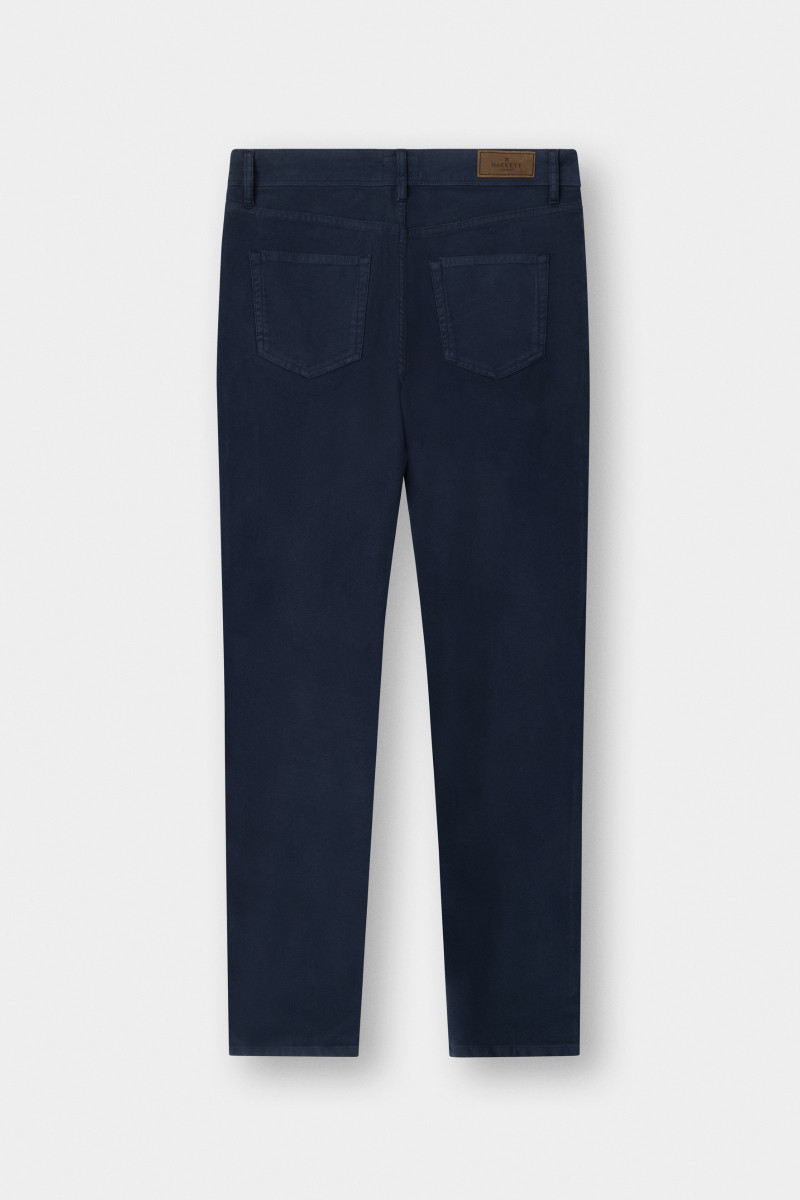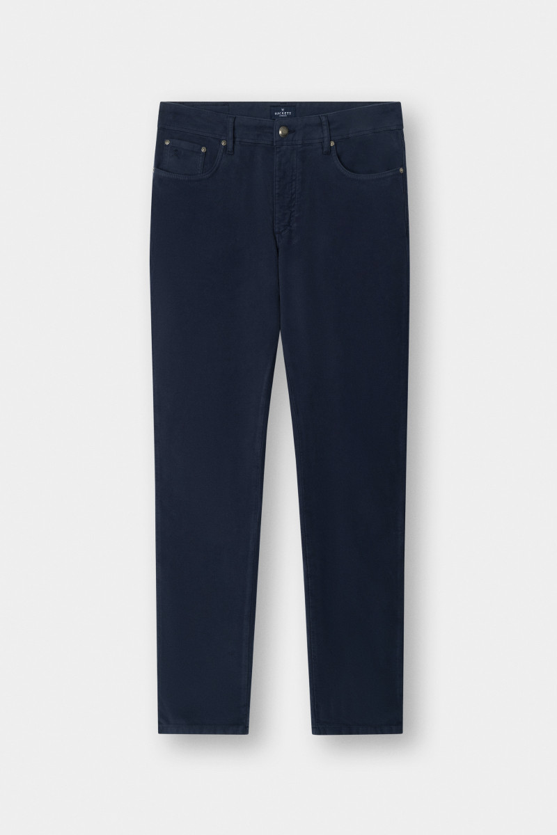 Férfi farmernadrág, amely standard magasságú üleppel van ellátva. Ez az ikonikus darab klasszikus nadrágzáródással van kiegészítve, márkajelzéses gombbal és cipzárral. Nem hiányozhat róla a hímzett Hackett logó sem az elülső ötödik zseben, valamint a bőrből készült részlet hátsó oldalán, amely márkafelirattal van ellátva. Anyaga fésült, rugalmas pamutszövetből készült, így bársonyosan puha felületű és rendkívül kellemes viseletet biztosít. Stílusosan, könnyen kombinálható darab, amely a téli időjárásban nélkülözhetetlen részévé válik lezser, ugyanakkor elegáns öltözékének.