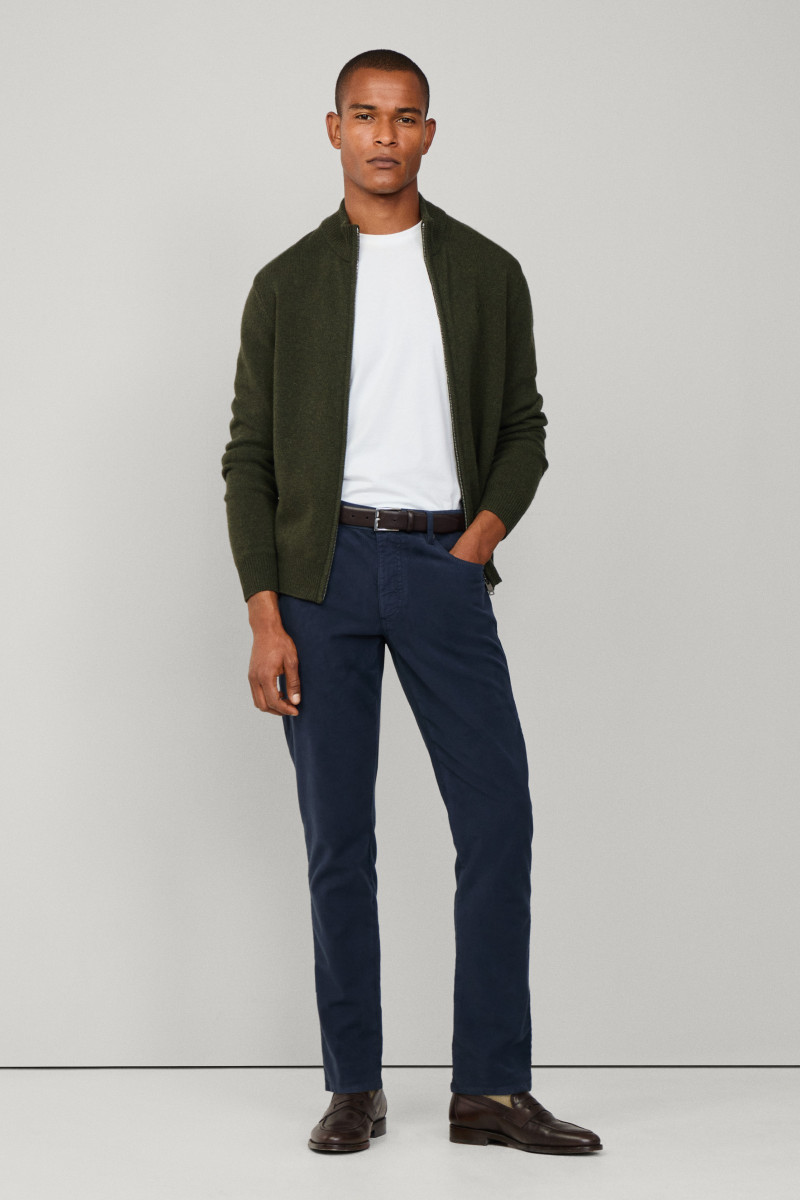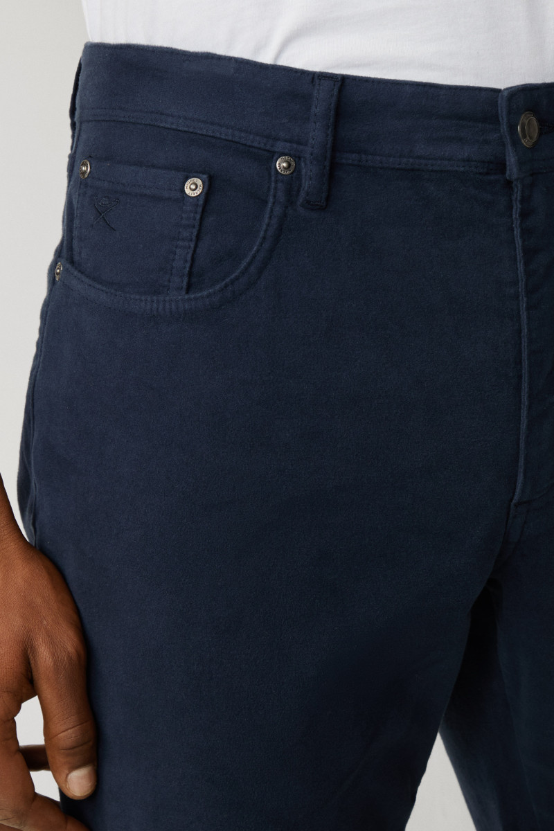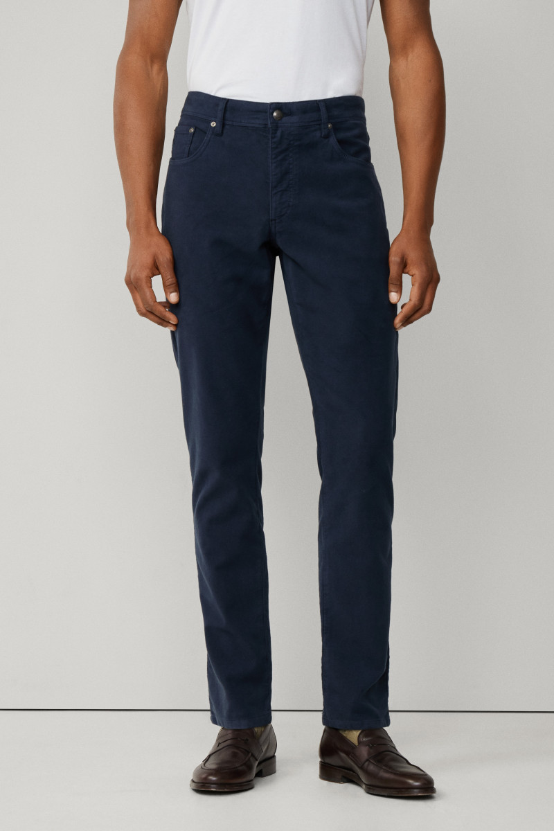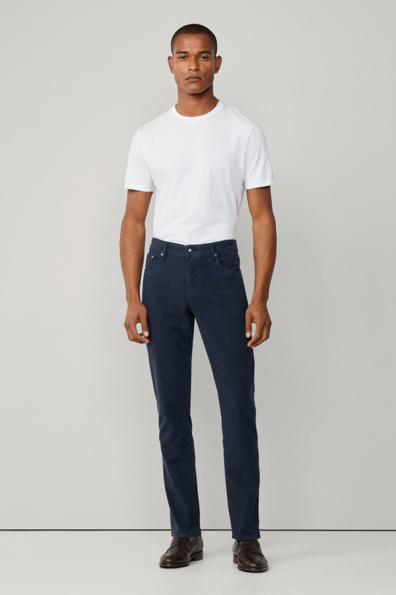 Férfi farmernadrág, amely standard magasságú üleppel van ellátva. Ez az ikonikus darab klasszikus nadrágzáródással van kiegészítve, márkajelzéses gombbal és cipzárral. Nem hiányozhat róla a hímzett Hackett logó sem az elülső ötödik zseben, valamint a bőrből készült részlet hátsó oldalán, amely márkafelirattal van ellátva. Anyaga fésült, rugalmas pamutszövetből készült, így bársonyosan puha felületű és rendkívül kellemes viseletet biztosít. Stílusosan, könnyen kombinálható darab, amely a téli időjárásban nélkülözhetetlen részévé válik lezser, ugyanakkor elegáns öltözékének.