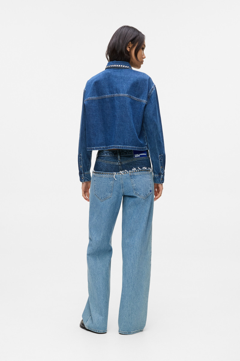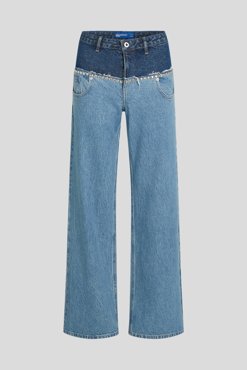 Női farmer egy markáns kétszínű dizájnnal. A laza, egyenes szárú kialakítást fényes szegecsek egészítik ki a kontrasztos szegélyen, KARL LAGERFELD JEANS bőr címke található a hátsó derékrészen, valamint egy K betűs hímzés a hátsó zseben. A minőségi anyagösszetétel pamutból készült, amely luxusosan matt fényű, bársonyosan finom és tökéletesen légáteresztő. Nagyon divatos darab, amely tökéletesen kiegészíti bármelyik szettedet.