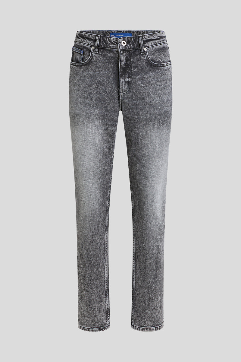Férfi farmer slim fazonban, közepesen magas derekú és cipzáras kialakítással. A klasszikus ötvözékes modell szürke színben, koptatott részletekkel az univerzális gardróbszekrény alapdarabja. Bőrcímkével díszítve, amelyen a Karl Lagerfeld Jeans logó van nyomtatva a hátsó részen, valamint egy kontrasztos K betű hímzett a hátsó zseben. A minőségi anyagösszetétel tökéletesen légáteresztő szövetet tartalmaz, prémium minőségű pamut rostokból, és elasztán adalékkal, ami biztosítja a nyúlékonyságot és maximalizálja a kényelmes viseletet hosszú időn keresztül. Tökéletes és időálló darab a ruhatáradba, amely számos stíluslehetőséget kínál.