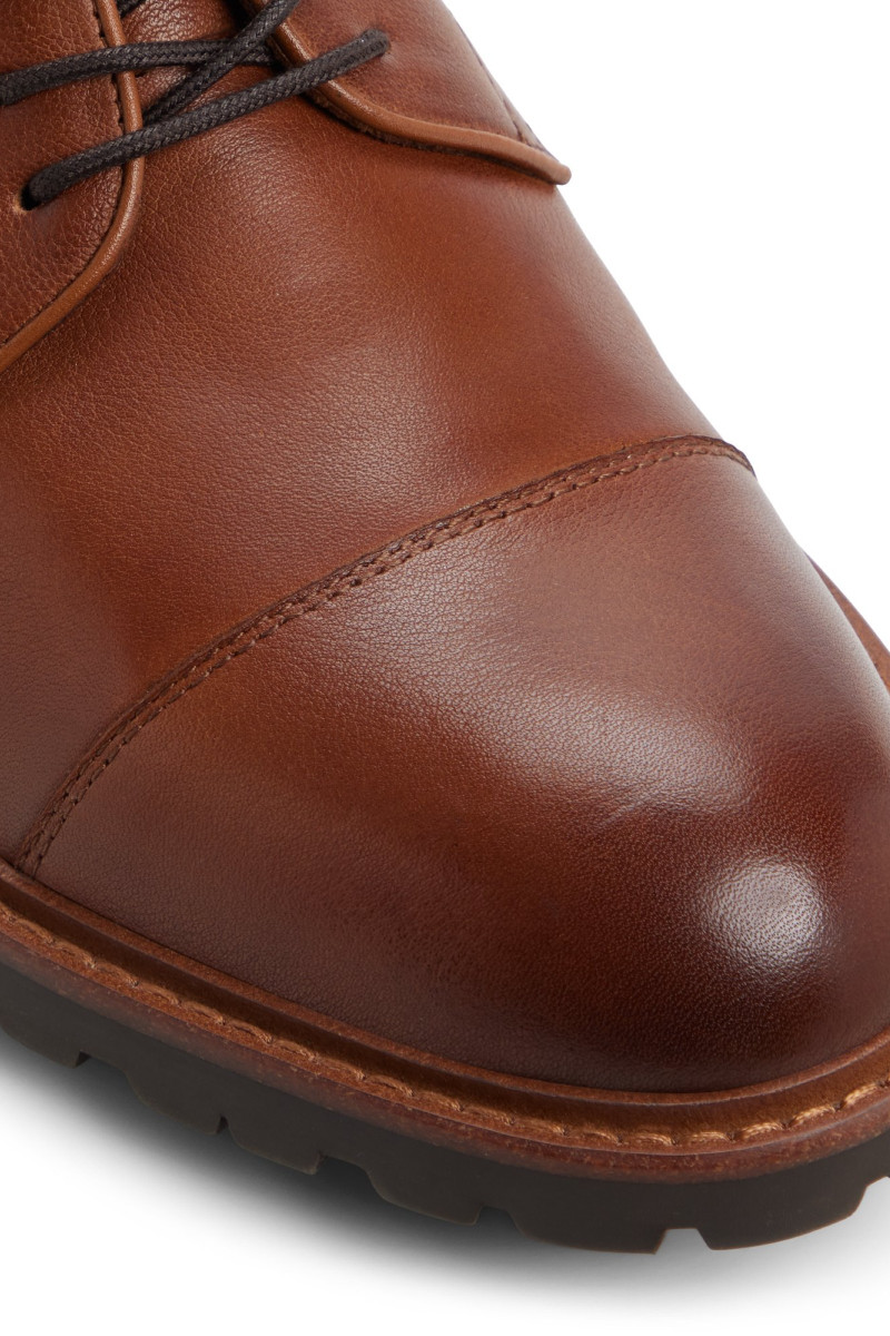 Emeld magasabb szintre az ünnepi összejöveteleket a Ferruci-val, egy elegáns, konyakbarna derby cipővel, amely melegséget és eleganciát visz minden alkalomra. Ez a finom cipő klasszikus derby stílusban készült, gazdag, meghívó konyak árnyalatban, ami gyönyörűen harmonizál az ünnepi öltözékekkel. Tökéletes választás ünneplésre, különleges vacsorákhoz vagy bármikor, amikor ki szeretnél tűnni csinos stílusoddal. Az időtlen sziluett biztosítja, hogy szezonról szezonra ezt a cipőt válaszd, így értékes kiegészítője lesz bármely ízléses ruhatárnak.