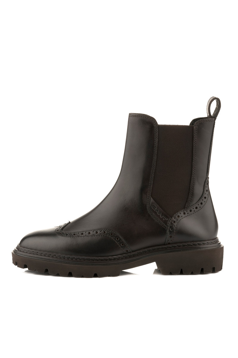 Sima, prémium minőségű marhabőrből készült női bokacsizma, amely exkluzív megjelenésével és sokoldalú felhasználhatóságával Önt is lenyűgözi majd. A lekerekített orr résszel és magasabb talppal ellátott, sportos, ugyanakkor elegáns kialakítású darabot perforáció és az elülső oldalán dombornyomott, decens Gant logó egészíti ki. Oldalán elasztikus elemekkel és hátoldalán sarokhurokkal, amely lehetővé teszi az egyszerű felhúzást. A luxus hatást keltő, teljes egészében bőrből készült belső tér maximális viselési kényelmet biztosít. Egy tökéletesen stílusos és kényelmes lábbeli, amely őszi öltözékének fénypontjává válik.
