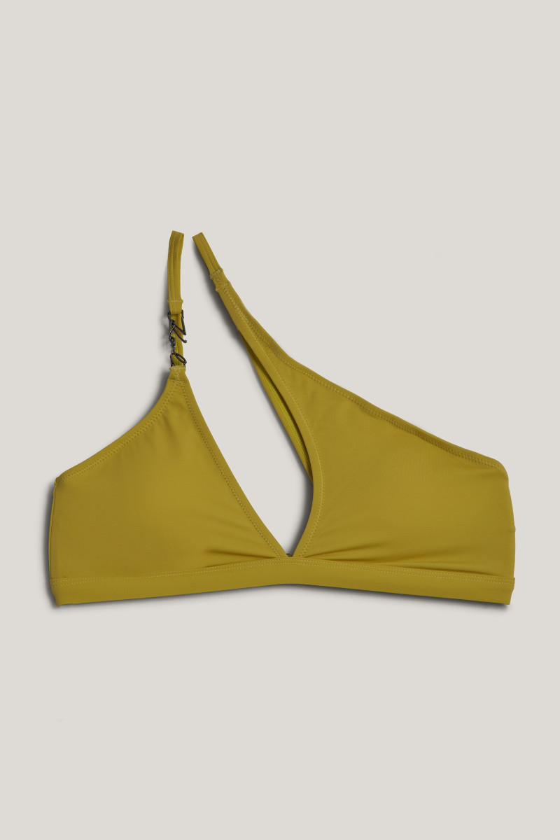 Női bikini felső, amely jellegzetes aszimmetrikus sziluettű. Kivehető töméssel és állítható pántokkal, amelyeknek köszönhetően alkalmazkodik viselője alakjáthoz. Karl Signature logóval a jobb vállpánton. Az újrahasznosított anyag és minőségi kivitelezés maximális viselési kényelmet biztosít. Rendkívül stílusos darab, amelyet különösen értékelni fog a vízparton és még élvezetesebbé varázsolja majd nyaralását. Kombinálja azonos stílusú alsóval.