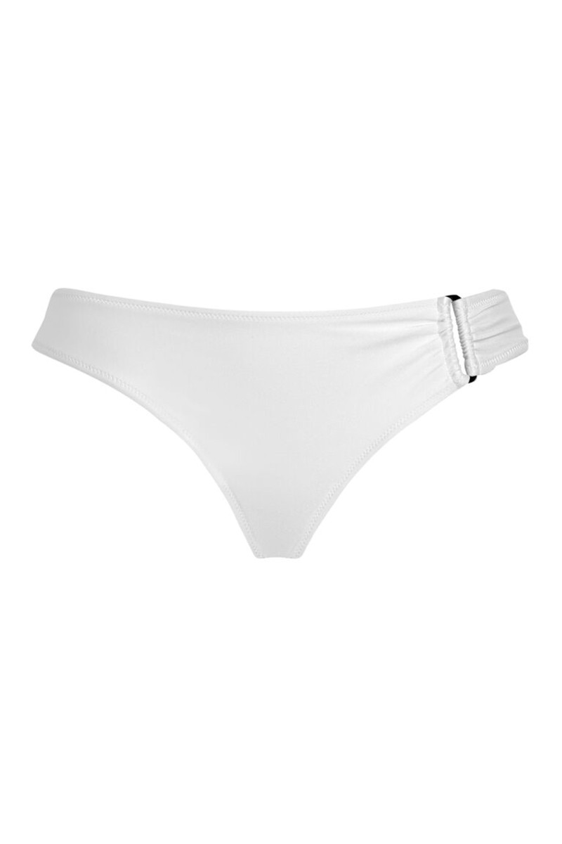Női bikini alsó, amelyet mutatós részlet díszít a bal oldalon. Egyszínű dizájnú darab, közepesen magas derékkal, amelyet diszkrét márkajelzés tesz különlegessé a hátsó részen. A minőségi anyagösszetételnek és a kiváló megmunkálásnak köszönhetően maximális kényelmet garantál viselése során. Tökéletes és stílusos darab, amely még kellemesebbé varázsolja a nyarat.