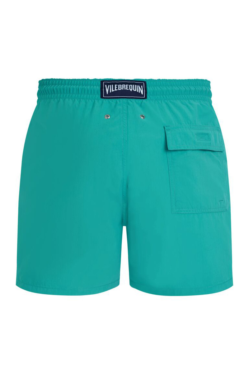 Férfi fürdőnadrág, amely laza szabású és térd fölé érő hosszúságú. Klasszikus derékmagassággal, két ferde oldalzsebbel és hátsó oldalán egy tépőzáras zsebbel. A rugalmas derékrészben zsinórral, amelynek színe összhangban van a fürdőnadrág dizájnjával. Praktikus nyílásokkal a hátsó részen, amelyek megakadályozzák a fürdőnadrág levegővel való megtelését vízbe ugrás közben. Hálós béléssel ellátott. A minőségi anyagösszetételnek köszönhetően ellenálló, sokáig megőrzi eredeti színét, gyorsan szárad és kellemesen puha. Pótolhatatlan alapjává válik minden nyári élményének.