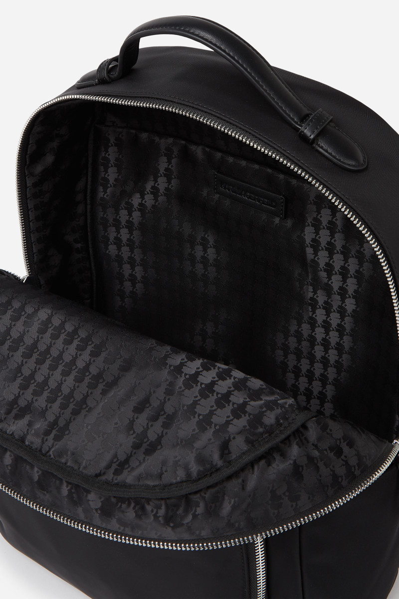 Stílusos hátizsák, amely újrahasznosított anyagból készült és KARL Ikonik logóapplikációval van díszítve. Az állítható vállpántokkal ellátott, egyszínű kialakítású darabot ellenálló fül és ezüstszínű fém cipzár egészíti ki. Az elülső praktikus zseb megkönnyíti a legfontosabb dolgokhoz való gyors hozzáférést. A bélelt belső tér teljes egészében Ikonik Karl dizájnnal van ellátva és egy lapos, zárható zseb teszi praktikussá. Elengedhetetlen és stílusos kiegészítő, amely tökéletessé varázsolja lezser öltözékét.