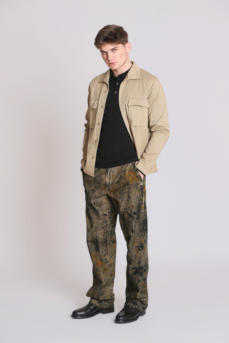 Férfi egyszínű ing egyenes szabással. Laza dizájn egyrészes gallérral, mellkasi rávarrt zsebekkel és gombos, rejtett záródással, amit légies átfedés egészít ki. A hosszú ujjakon gombos mandzsetta és egyenesen végződő alsó szegély található. A puha szövet minőségi pamutkeverékből készült, ami kiváló légáteresztő képességet, könnyedséget és rendkívül kellemes érzetet biztosít viselésekor. Tökéletesen stílusos darab, amely remekül kiegészíti a hétköznapi öltözéket.