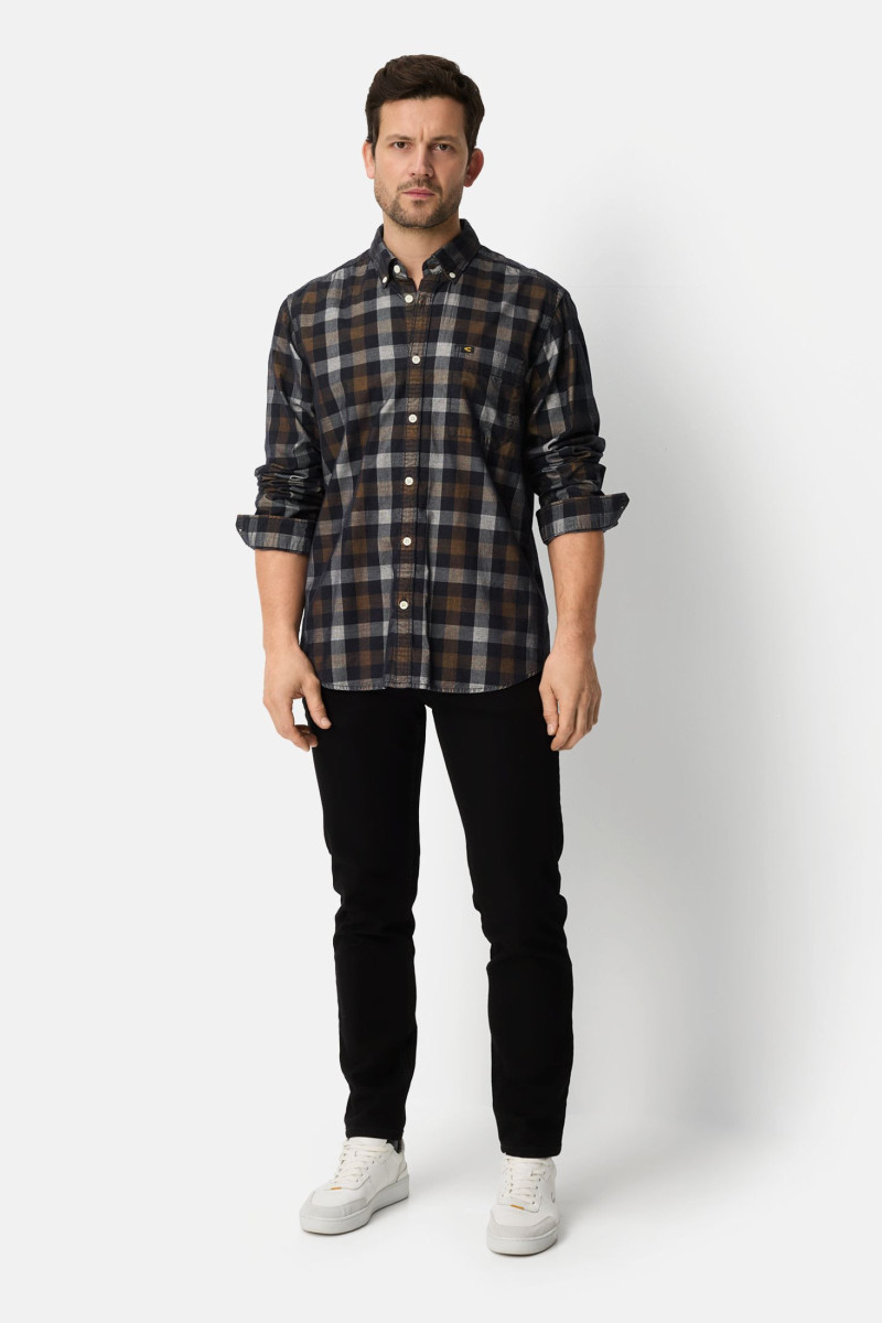 Kockás férfi ing, amely egyenes szabású. A sportos, ugyanakkor elegáns darab button down gallérral, hosszú ujjakkal és gombos záródással van ellátva. Praktikus mellzsebbel, amelyen Camel Active logó található. A könnyű, 100%-ban pamutból készült poplin anyag tökéletesen légáteresztő, kellemes tapintású és kényelmes viseletet biztosít. Merész színű darab, amely farmernadrággal és sportos dzsekivel kombinálva tökéletesen mutat majd.