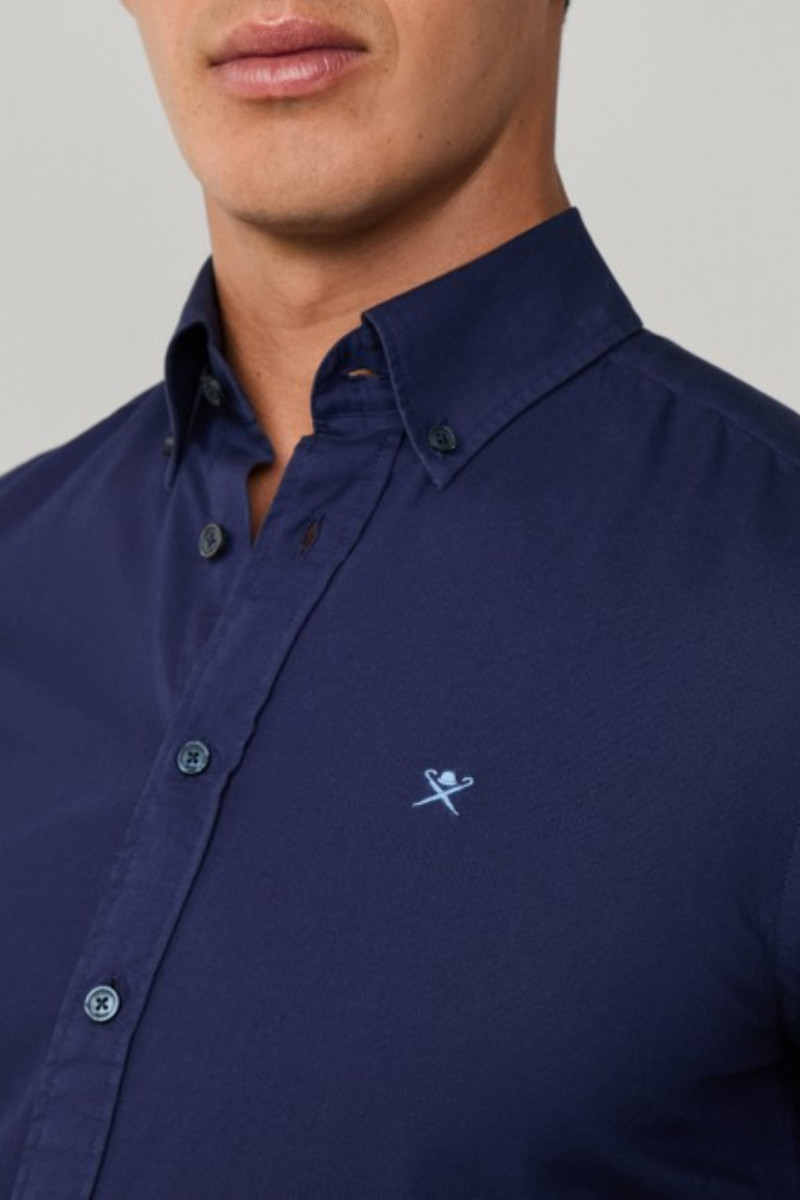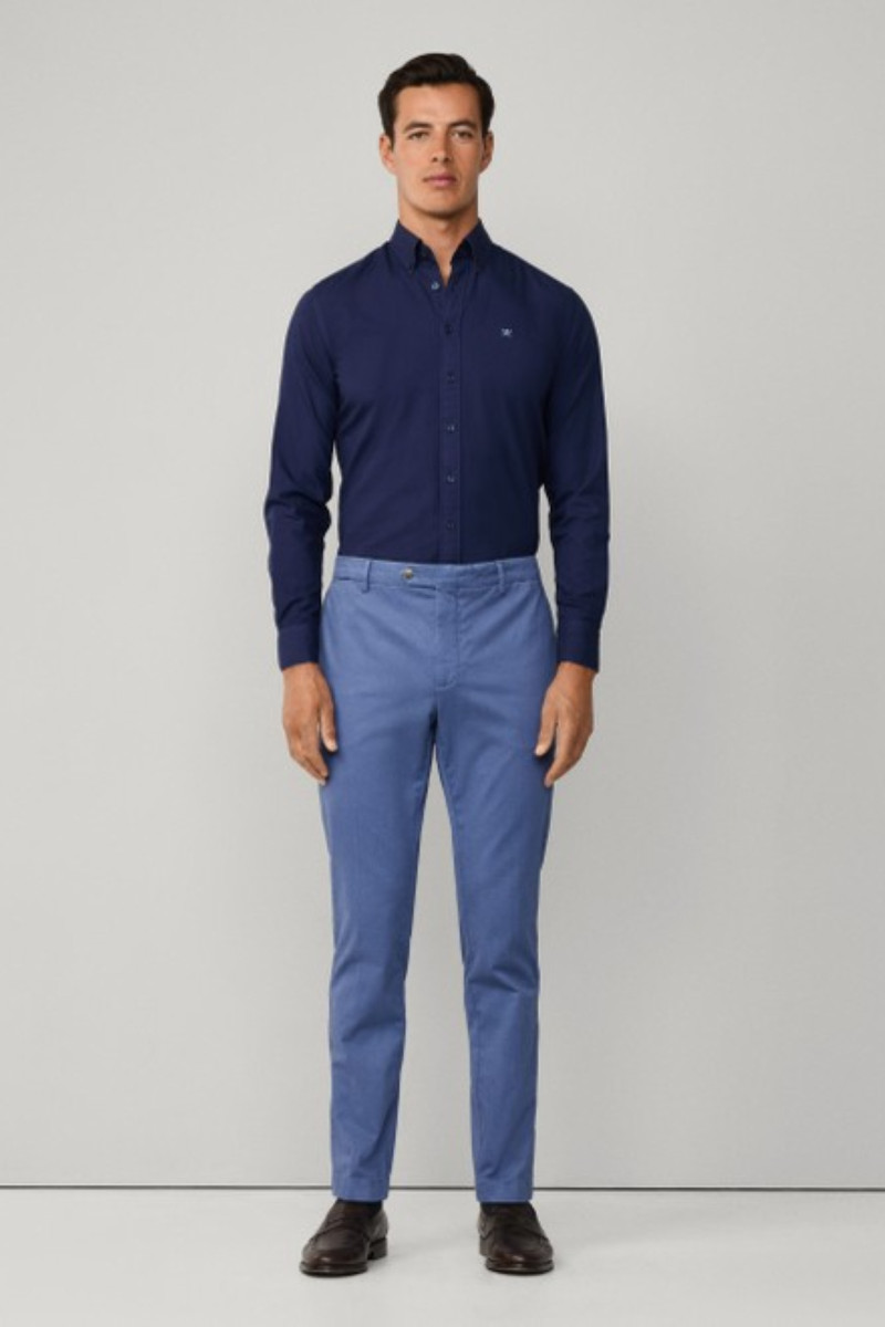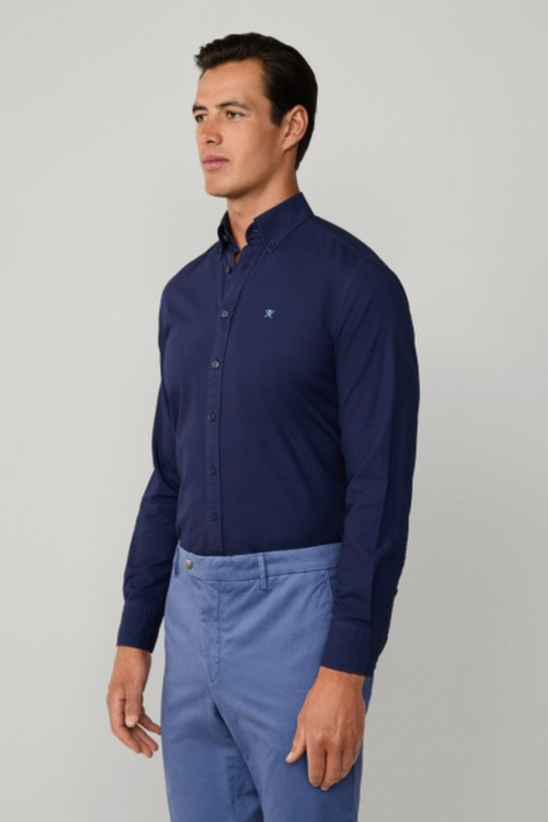 Hosszú ujjú férfi ing, amely rendkívül előnyös szabású és három gombos button down gallérral van ellátva, így biztosítja a tökéletes stabilitást és megkönnyíti a nyakkendő vezetését. A klasszikus, egyszínű dizájnú darabot a mellkason ikonikus, hímzett Hackett márkajelzés egészíti ki. A rendkívül puha anyag enyhén porózus, prémium minőségű pamutszálból készült, amelynek textúrája garantálja az egyedülálló légáteresztő képességet és a kényelmes viseletet. Ez az univerzálisan kombinálható darab elengedhetetlen részévé válik lezser, ugyanakkor elegáns ruhatárának.