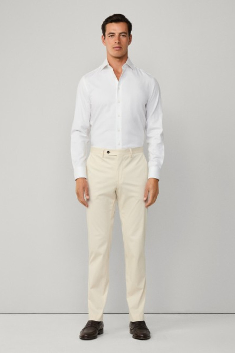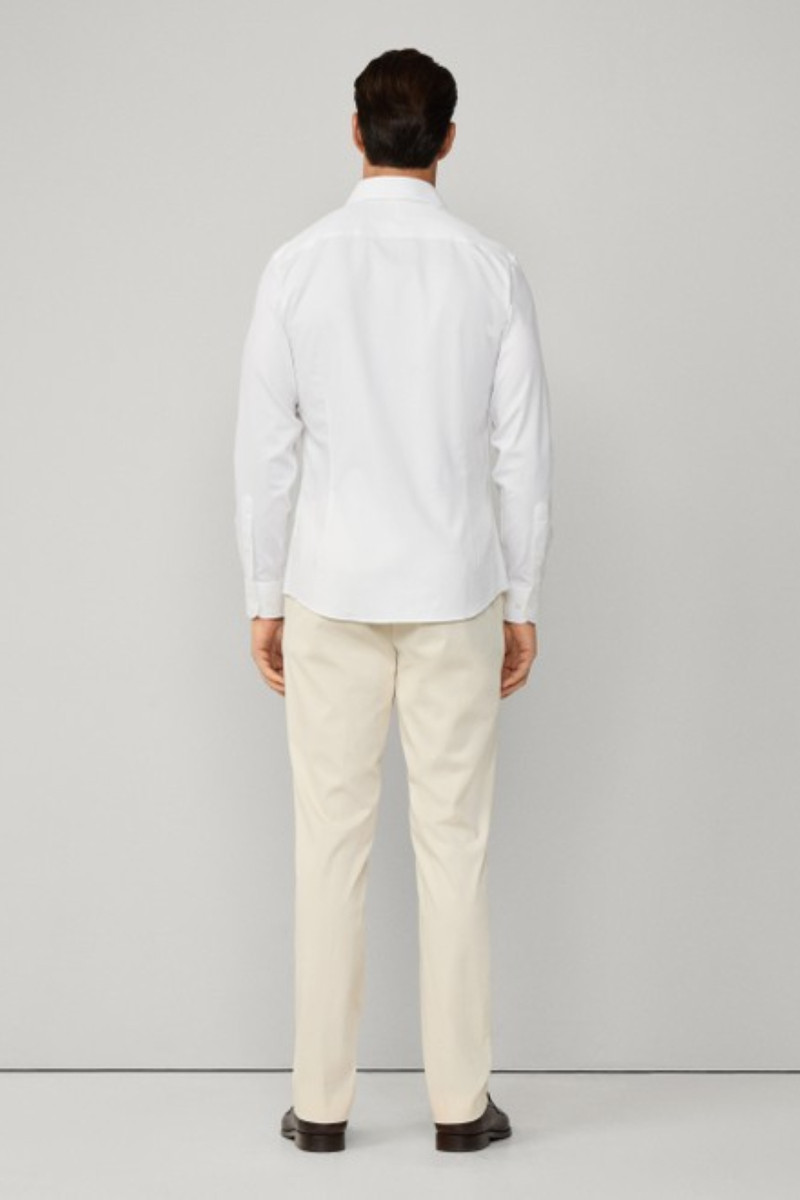 Elegáns férfi ing, amely rendkívül előnyös szabású és hosszú ujjakkal, valamint nyitottabb gallérral van ellátva, így nyakkendővel vagy csokornyakkendővel is kombinálható. Ez a praktikus darab a formális ruhatár elengedhetetlen részévé válik. Halszálka minta díszíti és kellemesen puha, prémium minőségű pamutszálból készült. Anyaga légáteresztő képességet biztosít és garantálja a kényelmes viseletet. Könnyen kombinálható darab, amely öltözékének eleganciát és stílusos kinézetet kölcsönöz.