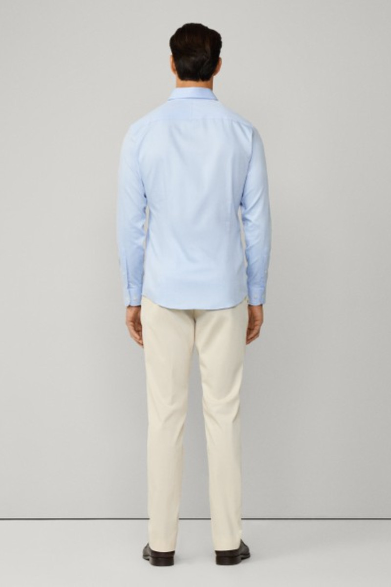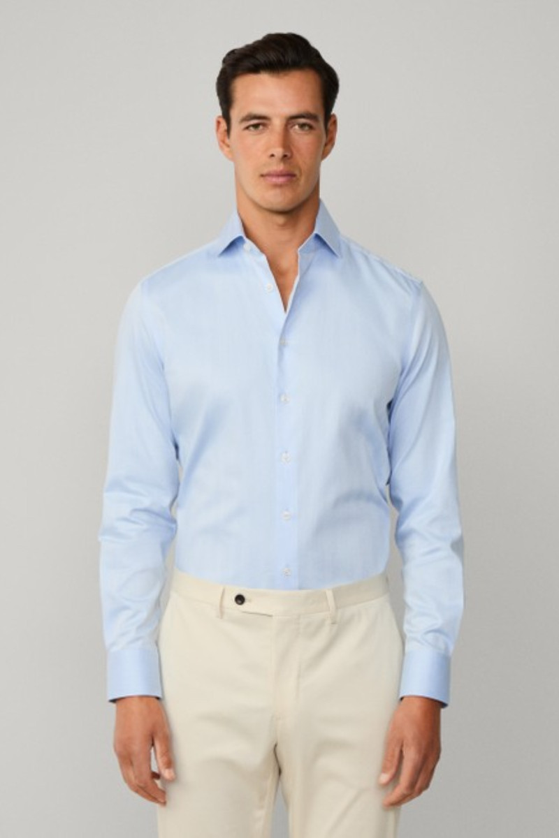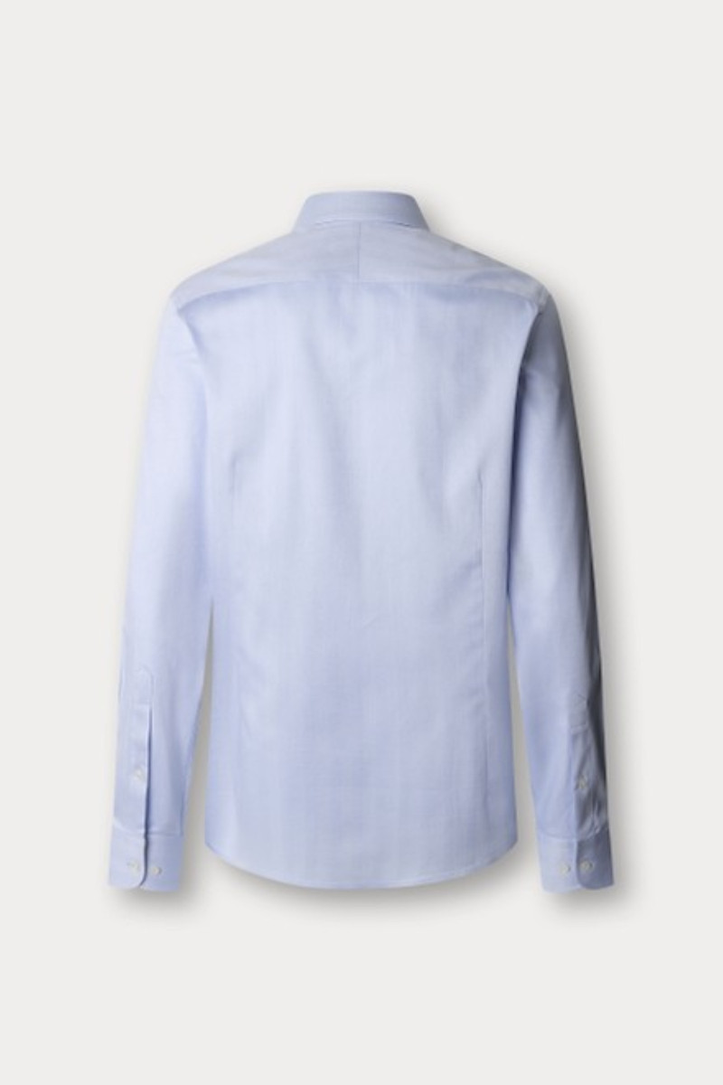 Elegáns férfi ing, amely rendkívül előnyös szabású és hosszú ujjakkal, valamint nyitottabb gallérral van ellátva, így nyakkendővel vagy csokornyakkendővel is kombinálható. Ez a praktikus darab a formális ruhatár elengedhetetlen részévé válik. Halszálka minta díszíti és kellemesen puha, prémium minőségű pamutszálból készült. Anyaga légáteresztő képességet biztosít és garantálja a kényelmes viseletet. Könnyen kombinálható darab, amely öltözékének eleganciát és stílusos kinézetet kölcsönöz.