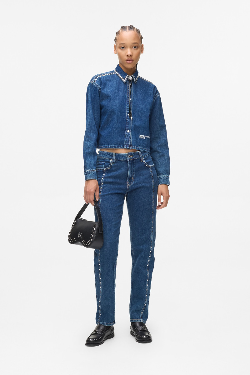 Női farmer ing kissé rövidített fazonban. Laza tervezés hosszú ujjakkal, egyenesen végződő derékrésszel és patentos gombokkal az elején és az ujjak mandzsettáin, amelyeket elegáns szegecsek egészítenek ki a vállvarrások és a gallér mentén. Nem hiányzik róla a Karl Lagerfeld Jeans markáns logója az elején. Az anyagösszetétel tökéletes könnyedséget, légáteresztő képességet és folyékony megjelenést garantál. Remekül kombinálható darab modern szabásban, amely stílusosan kiegészíti a sportosan elegáns öltözéket.