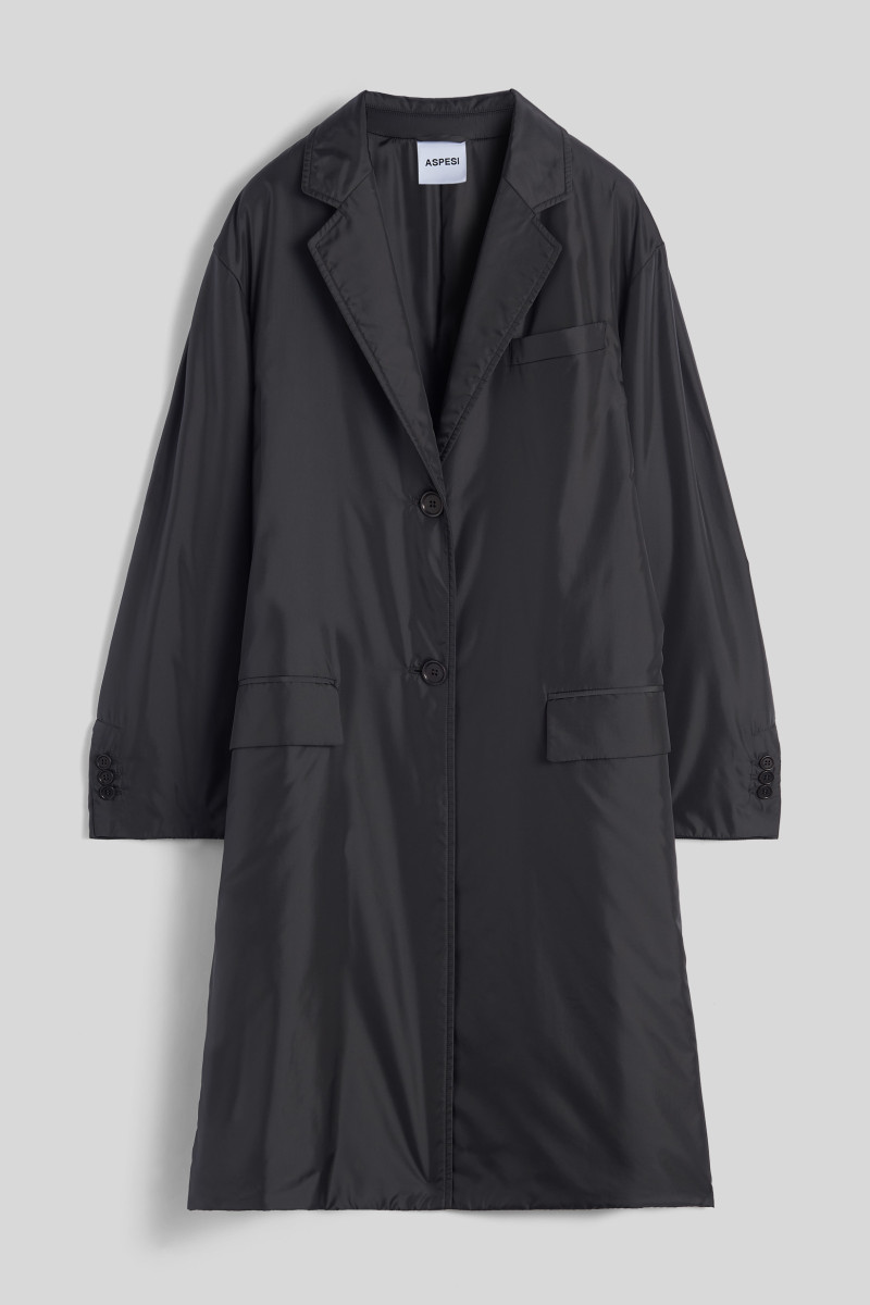Női könnyű kabát bővebb szabással, térdig érő hosszúságban. Egyszínű dizájn klasszikus hajtókákkal, eltolódott vállvonalakkal és két gombos záródással, amit oldalsó csúszózsebek egészítenek ki. A belső rész közepesen vastag Thermore vatelin béléssel van ellátva. Ez a maximálisan kényelmes és kiválóan kombinálható darab stílusosan feldobja a sportosan-elegáns öltözéket.