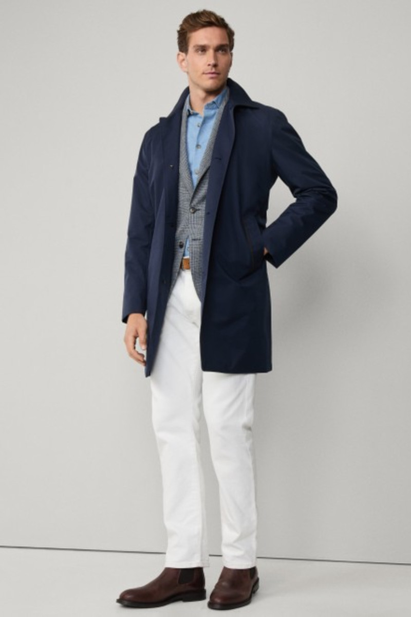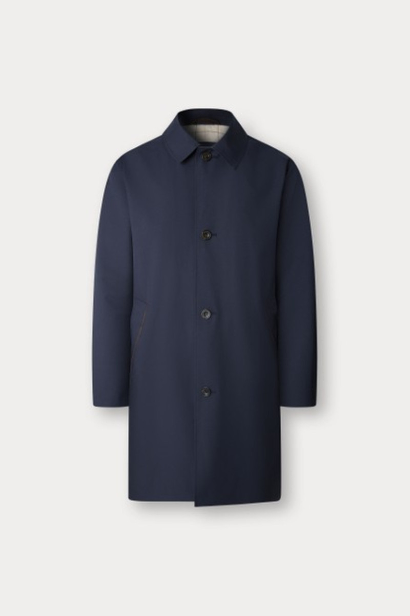 Férfi kabát, amely laza dizájnú és gombos záródású. Egyenes, rendkívül előnyös és kényelmes szabású darab, amely combközepéig érő hosszúságú és hátoldalán hasíték egészíti ki. A gallér kontrasztos aláfestésű, velúr anyaggal ellátott, amely az oldalzsebeken található szegélyt is díszíti. Ellenálló, mégis könnyű és rendkívül kellemes tapintású szövetből készült, minőségi szintetikus szálból, így ellenáll az esőnek, nem gyűrődik és könnyen karbantartható. Az ikonikus brit elegancia megtestesítője, amit a bélésen található kockás minta tovább fokoz. Sokoldalúan kombinálható darab, amely nélkülözhetetlen részévé válik a mindennapok öltözékének.