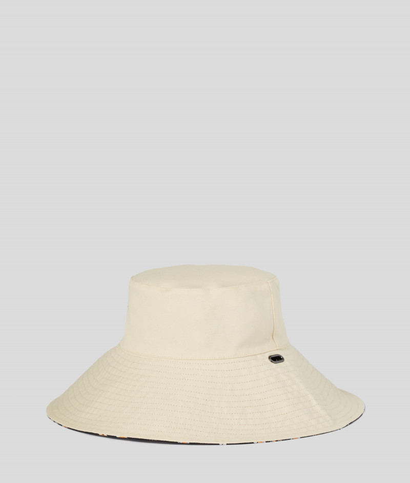 Női virágos kalap zsinórral. A kalap kétoldalas, egyik oldala semleges, és középen a márka logója látható. A sapka másik oldalán egy finom virágos, divatos minta található. Ez a finoman vidéki megjelenésű dizájner kalap remekül illik sálakhoz vagy sportos öltözékhez.