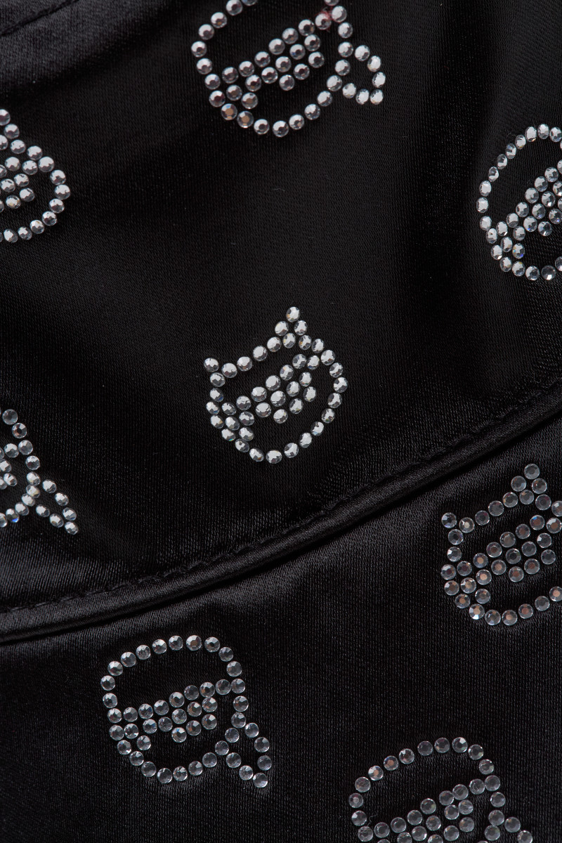 Női sapka, amely eredeti, teljes egészében kövekkel kirakott Ikonik Karl és Choupette dizájnnal van ellátva. A széles karimájú, szűk dizájnú darab ötletes és ízléses hatást kelt. Anyaga tökéletes légáteresztő képességet és kellemes viseletet garantál. Egy összetéveszthetetlenül stílusos kiegészítő, amely garantáltan feldobja majd lezser öltözékét.