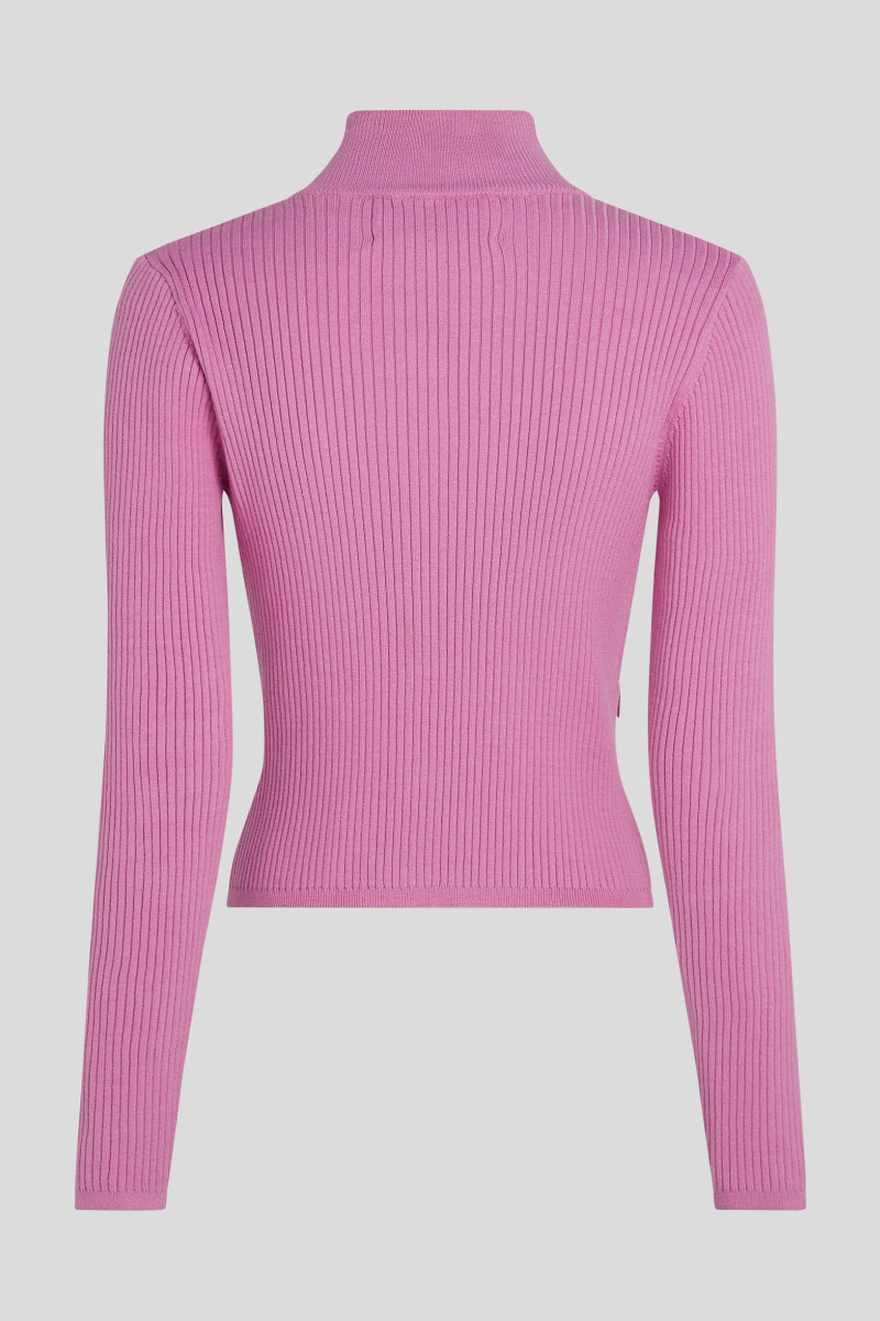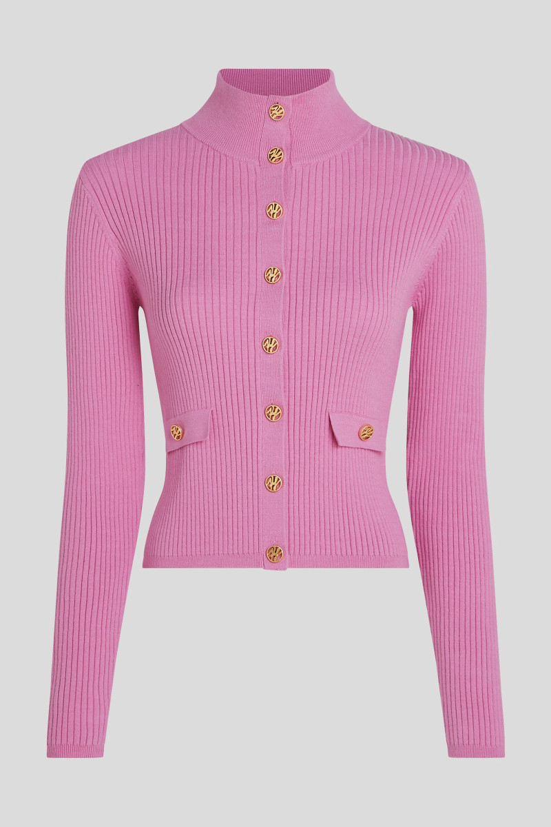 Női teljesen záródó kardigán emelt álló gallérral és barázdált mintával. Testhezálló design, bordázott szegélyekkel a nyakon, a deréknál és az ujjakon, amit arany gombok egészítenek ki a Karl Autograph logó formájában. Az elasztikus pamut kötés tökéletesen megtartja eredeti formáját, nagyon kényelmes viselet és könnyen karbantartható. Nagyon praktikus és időtálló darab klasszikus szabásban, amely tökéletesen kiegészíti a sportosan elegáns öltözéket.
