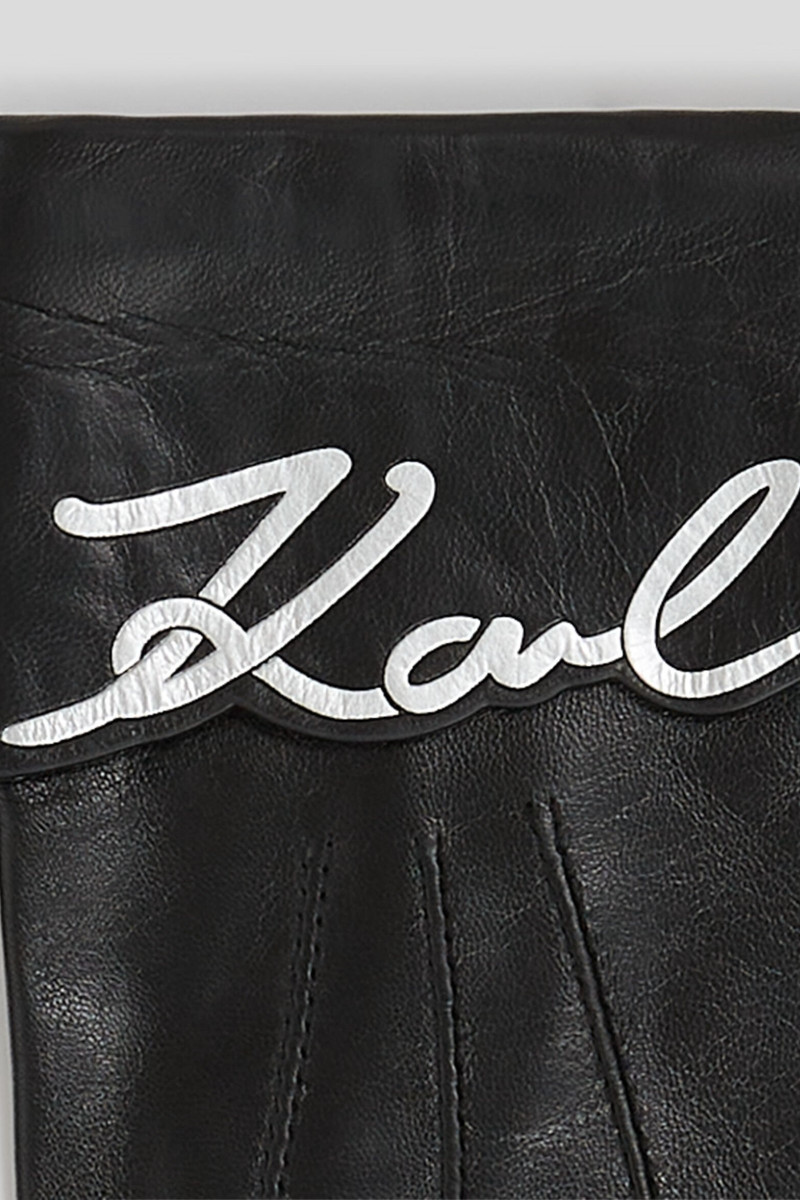 Teljes egészében bőrből készült női kesztyű, amely időtálló kialakítású és ott a helye minden téli ruhatárban. Az elegáns dizájnú darab a csuklón jellegzetes Karl Signature logóval van ellátva. Felületi anyaga puha, tartós, prémium minőségű kecskebőrből készült. Elengedhetetlen és stílusos kiegészítő, amely téli öltözékének díszévé válik majd.