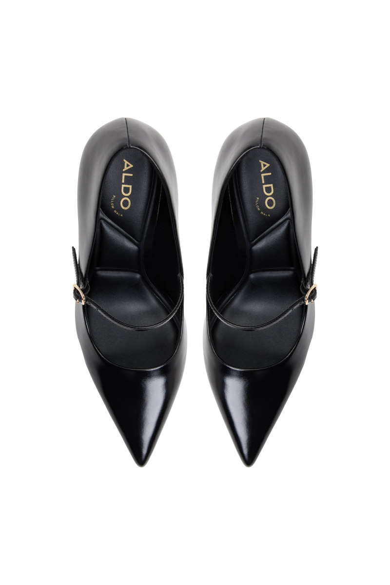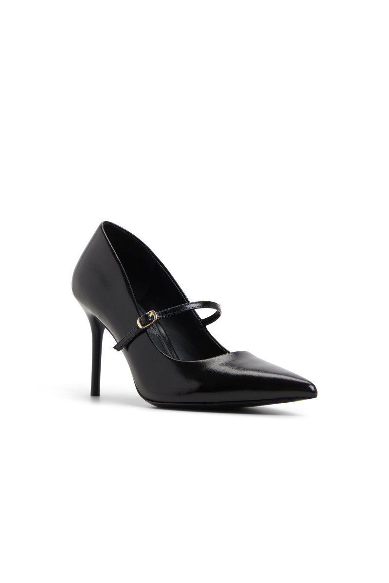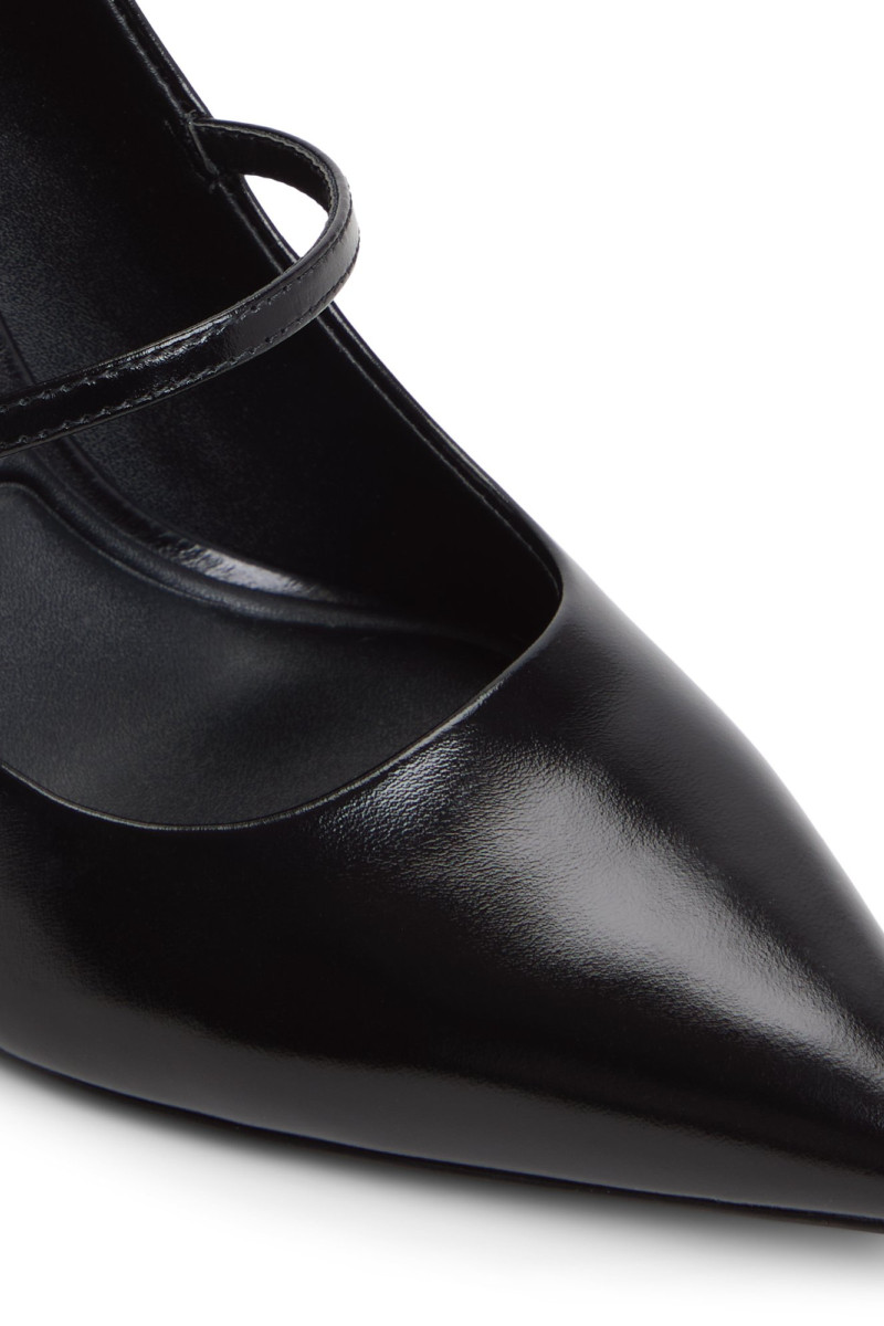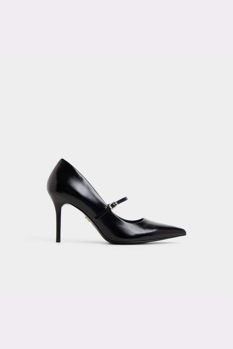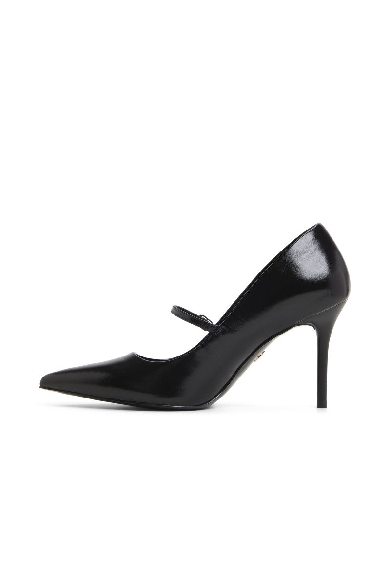 Simán fekete bőr borítja a hegyes orrú részt, kiegyensúlyozva egy finom Mary Jane pánttal és tűsarkú cipővel, nappal és éjszaka egyaránt magabiztos megjelenést kölcsönöz. Párosítsd szabott nadrággal prezentációkhoz, vagy váltogass selyem slip ruhára, amikor a tetőtéri koktélok csábítanak.