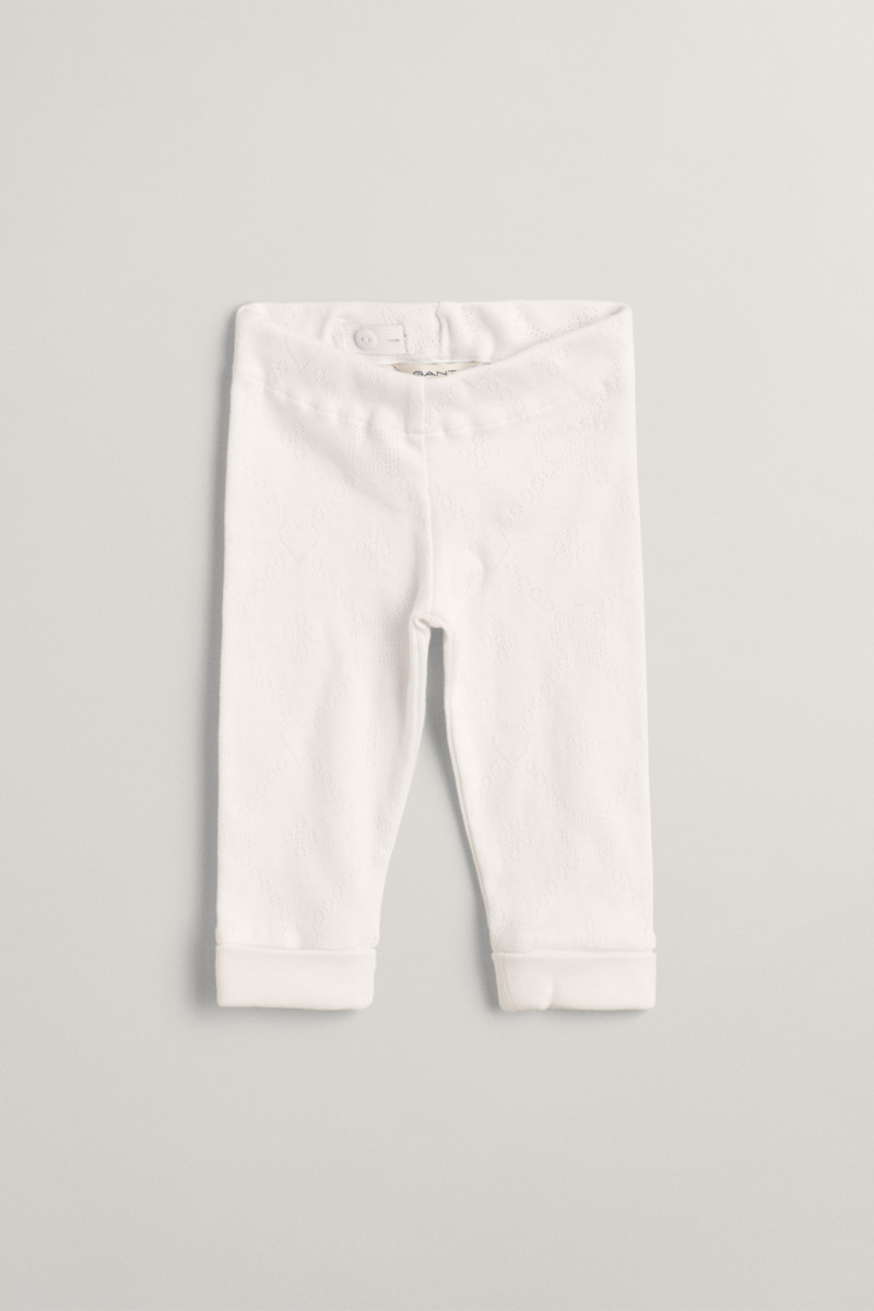 Bájosan texturált, prémium minőségű kötött anyagból készült gyermek leggings. Elasztikus húzózsinórral a derékpánt belső oldalán, márkafelirattal a bal oldalon. Anyaga organikus pamutszálból készült, amely kellemesen puha, melegen tart és egyedülálló légáteresztő képességet biztosít. Felbecsülhetetlen előnye az alacsony karbantartási igény, ennek ellenére azonban a darab sokáig megőrzi eredeti színét és alakját. Praktikus darab, amely garantálja, hogy gyermeke elégedett lesz és kényelmesen érzi majd magát a leggings viselése közben.