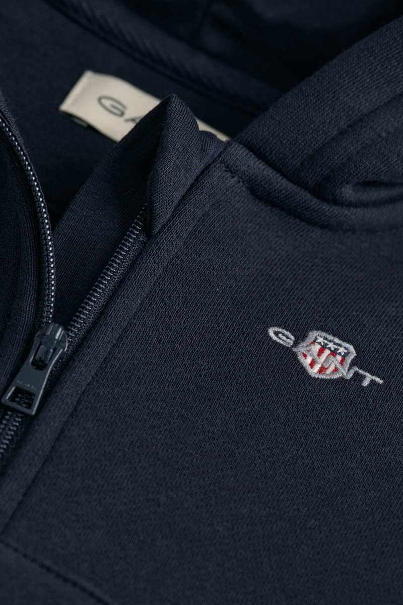 Kapucnis, teljes egészében cipzárral ellátott gyermek melegítő felső. Praktikus kivitelezésű, rendkívül előnyös szabással. Bordázott szegéllyel van ellátva a derékon és az ujjakon. Mellkasán hímzett, ikonikus márkajelzéssel és két oldalsó ferde zsebbel. Anyaga prémium minőségű pamutszálból készült és puha tapintású jersey alkotja, amely kellemesen melegen tart, mindenekelőtt azonban kényelmet biztosít, ami minden gyermek számára elengedhetetlen. Az azonos dizájnú melegítő nadrággal kombinálva egyedi szabadidős szett érhető el.