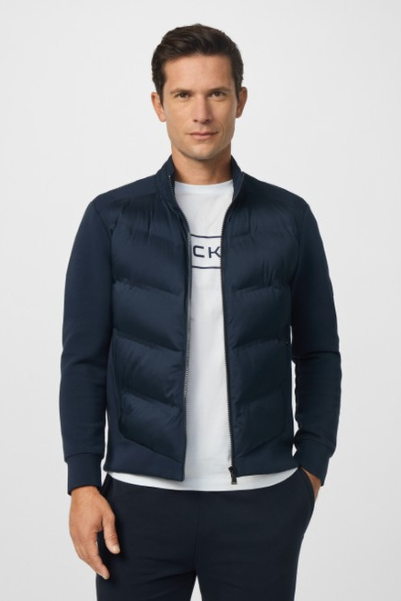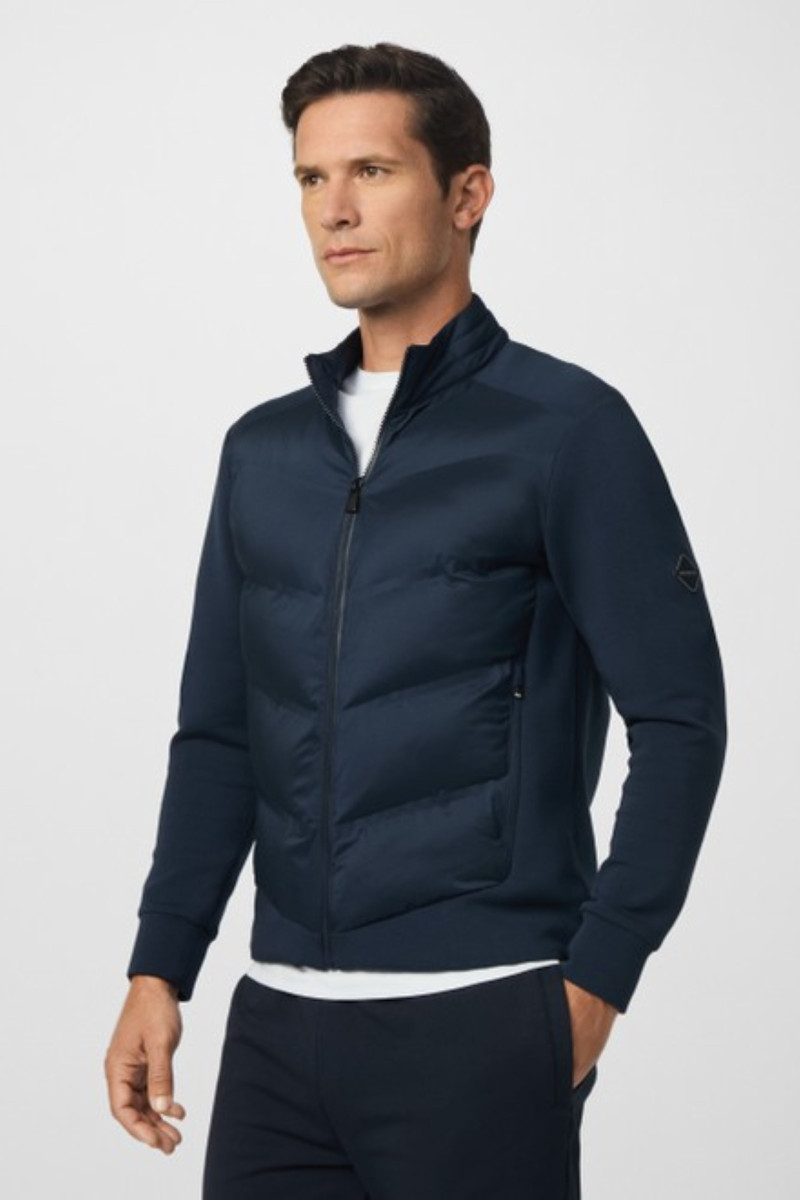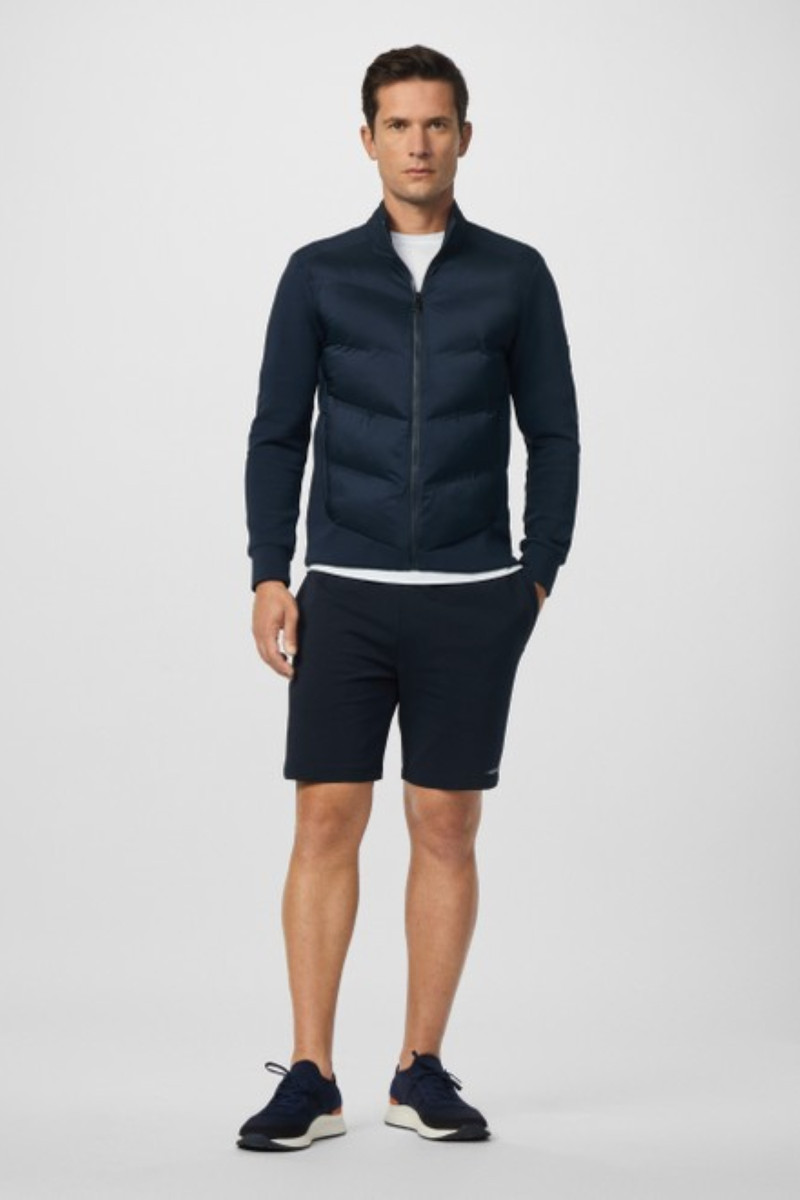 Eredeti férfi melegítőfelső, amely steppelt anyagból készült, míg a karokon, valamint a hátán sima jersey teszi egyedivé. Rendkívül előnyös darab, amely állógallérban végződő cipzáras záródással és két oldalsó zsebbel van kiegészítve. Egyszínű dizájnú darab, amelynek vállán logó, hátoldalán pedig márkanév található. Anyaga magas arányban tartalmaz kellemesen puha pamutszálat, hozzáadott elasztánnal, így rugalmasságot és kényelmes viseletet garantál. Stílusos darab, amely elengedhetetlen részévé válik sportos, ugyanakkor lezser öltözékének.