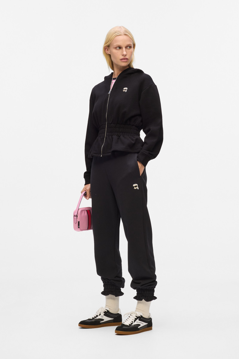MELEGÍTŐ FELSŐ KARL LAGERFELD IKON PATCH CINCHED ZIP HOODIE BLACK