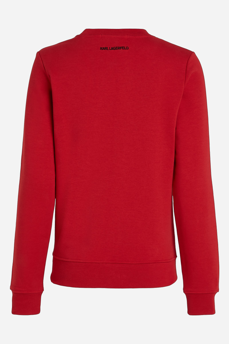 Kerek nyakkivágással ellátott női melegítő felső, amely Ikonik Karl és Choupette grafikával van ellátva. Az egyenes szabást a nyaknál, a deréknál és az ujjaknál bordázott szegély egészíti ki, a hátoldalán pedig kontrasztos KARL logónyomat található. A magas aránybal organikus pamutot tartalmazó anyag tökéletes puhaságot, légáteresztő képességet és kellemes viseletet garantál. Egy rendkívül stílusos darab, amely garantáltan feldobja szabadidős öltözékét.