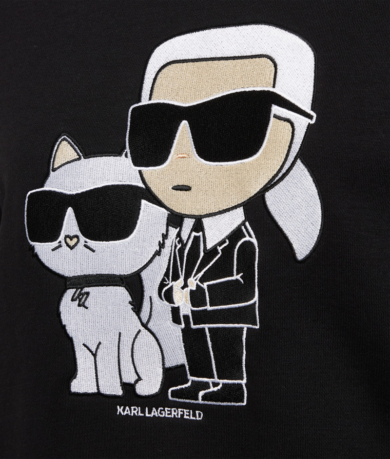 Az ikonikus Karl és szeretett társa, Choupette ennek a fenntartható melegítő felsőnek a középpontjéban állnak. A játékos stílus a modernizált Ikonik 2.0 kollekcióhoz tartozik, amelyben a legkelendőbb darabokat a sikeres NFT digitális kollekció által ihletett modernizált Ikonik Karl és Choupette grafikák egészítik ki.