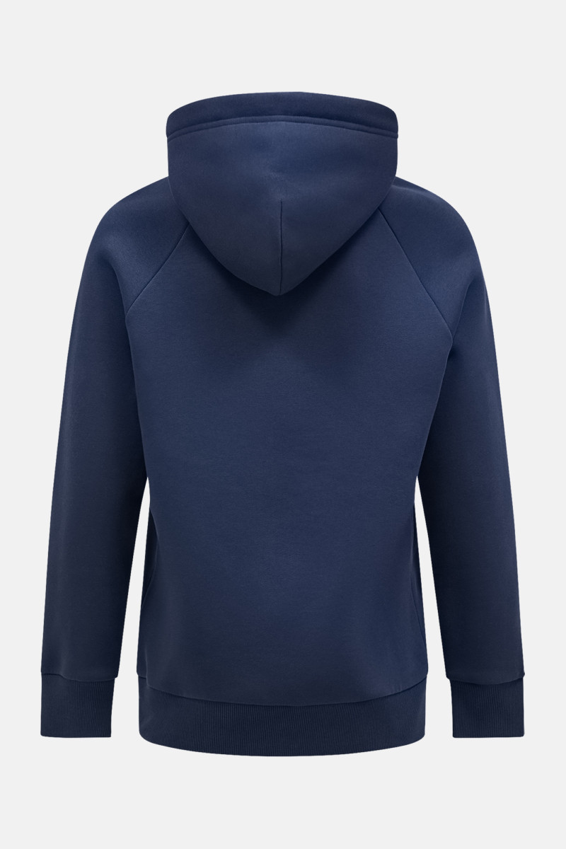 Kapucnis férfi melegítő felső. Egyenes szabású és nagyméretű, kontrasztos, hímzett márkajelzéssel van ellátva a mellkason. Raglan ujjakkal, valamint bordázott szegéllyel a derékon és az ujjakon. Húzózsinóros kapucnival és elülső oldalán kenguru zsebbel. A kapucnis melegítő felső nagyon kényelmes és könnyű anyagból készült. Az enyhén szálcsiszolt hátoldalú, sima kötött anyag rendkívül légáteresztő, kellemes tapintású és könnyen karbantartható. Praktikus darab, amely tökéletesen kiegészíti majd bármelyik sportos öltözékét.