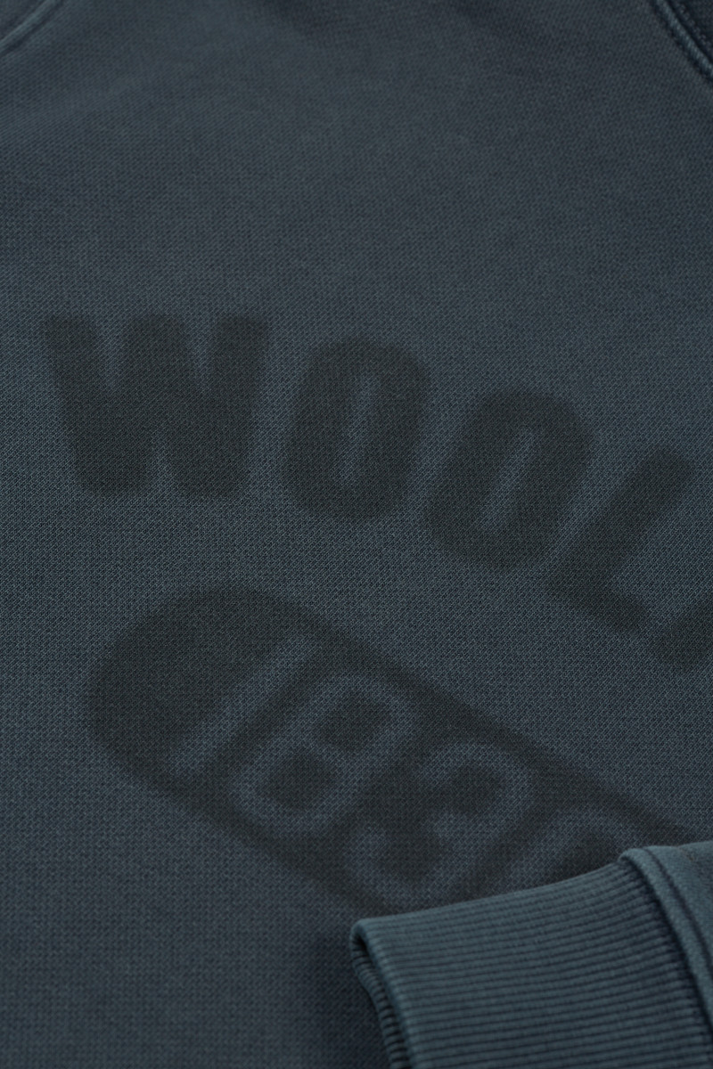 MELEGÍTŐ FELSŐ WOOLRICH GARMENT DYED LOGO HOODIE MELTON BLUE