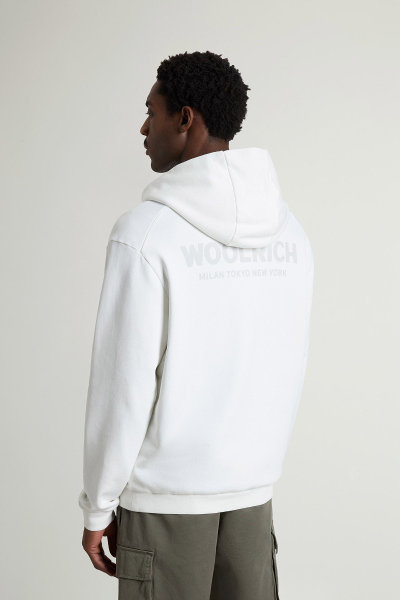 Férfi pulóver, amelyet a márka nevével díszített felirat ékesít a mellkason és a háton. Egyenes, nagyon kényelmes szabású, kapucnival kiegészített darab, amelyet egy tágas kenguruzseb egészít ki. Nem hiányozhatnak a rugalmas mandzsetta a ujjakon és a derékrészen sem, amelyek garantálják a tökéletesen illeszkedő darabot. Az anyagösszetétel sima kötésű, rendkívül puha és tökéletesen lélegző prémium minőségű pamut szálból készült, ami ennek a szabadidős darabnak köszönhetően nagyon kellemes viseletet biztosít viselése során. Könnyen kombinálható cikk, amely stílusos részévé válik sportosan hangolt öltözékeidnek.