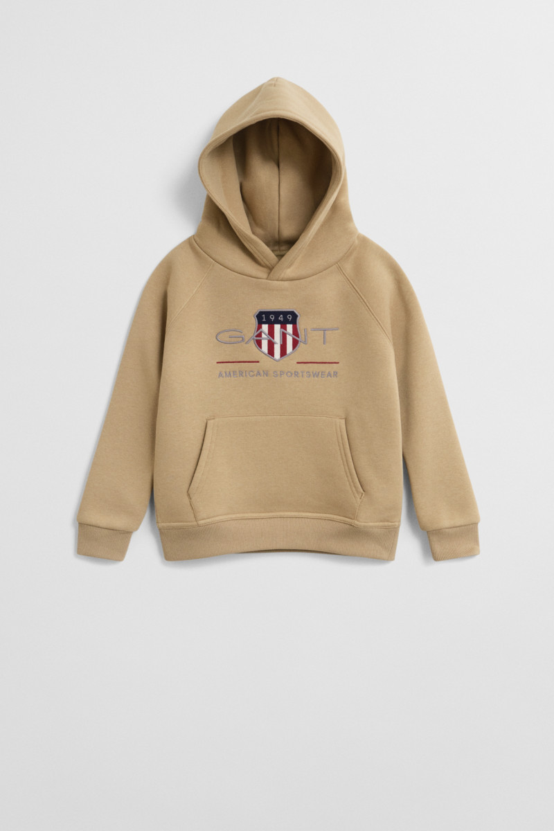 Puha jersey-ből készült, sportos gyermek melegítőfelső, amely kellemesen melegen tart és a mellkason domináns márkahímzés díszíti. Az egyenes szabású darabot kapucni és a derékrészen, valamint ujjakon praktikus szegélyek egészítik ki. Tágas kenguru zsebbel. A tartós anyag magas arányban tartalmaz kiváló minőségű pamutszálat, így garantálja a rendkívül kényelmes érzést viselés közben. Tökéletesen kombinálható darab, amely stílusos megjelenést kölcsönöz majd minden szabadidős öltözéknek.