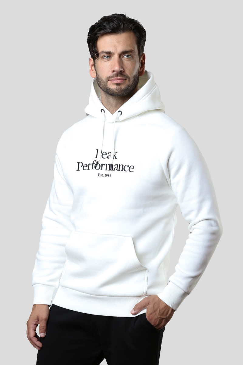Férfi kapucnis melegítő felső, amely nagyon kényelmes és könnyű anyagból készült. Egyenes szabású, nagyméretű hímzett márkajelzéssel a mellkason, raglan ujjakkal, bordázott szegéllyel a derékon és az ujjakon, valamint kenguru zsebbel. Kapucnija húzózsinórral van ellátva. A sima kötött anyag enyhén szálcsiszolt hátoldalú, így maximálisan légáteresztő, kellemes tapintású és könnyen karbantartható. Nagyon praktikus darab, amely tökéletesen kiegészíti majd bármely sportos öltözékét.