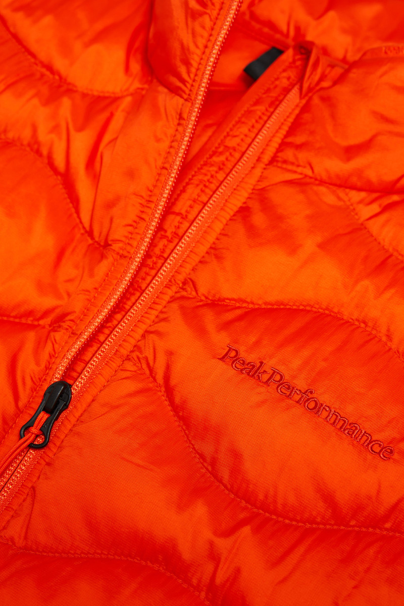 Férfi steppelt mellény. Egyenes szabás, kissé hosszabbított hátsó rész, márkajelzés hímzett a mellkason, minőségi töltet kacsatollal, amely garantáltan ellenőrzött, környezetbarát eredetű, nyomon követhető a Track My Down® programon keresztül, 90/10 arányban, 700 CUIN töltőértékkel. A mellény praktikus, cipzáras zsebekkel, hátul füllel és rugalmas szegéllyel a karöltőknél és a deréknál van ellátva. Minimális helyigény útközben, köszönhetően az egyszerű csomagolhatóságnak. A mellény részben újrahasznosított poliamidból készült, PFC-t nem tartalmaz, rendkívül könnyű, szélálló és vízlepergető. Nagyon praktikus darab egész éves használatra, kényelmesen viselhető mint alsó réteg a kabát alatt vagy mint felső réteg.