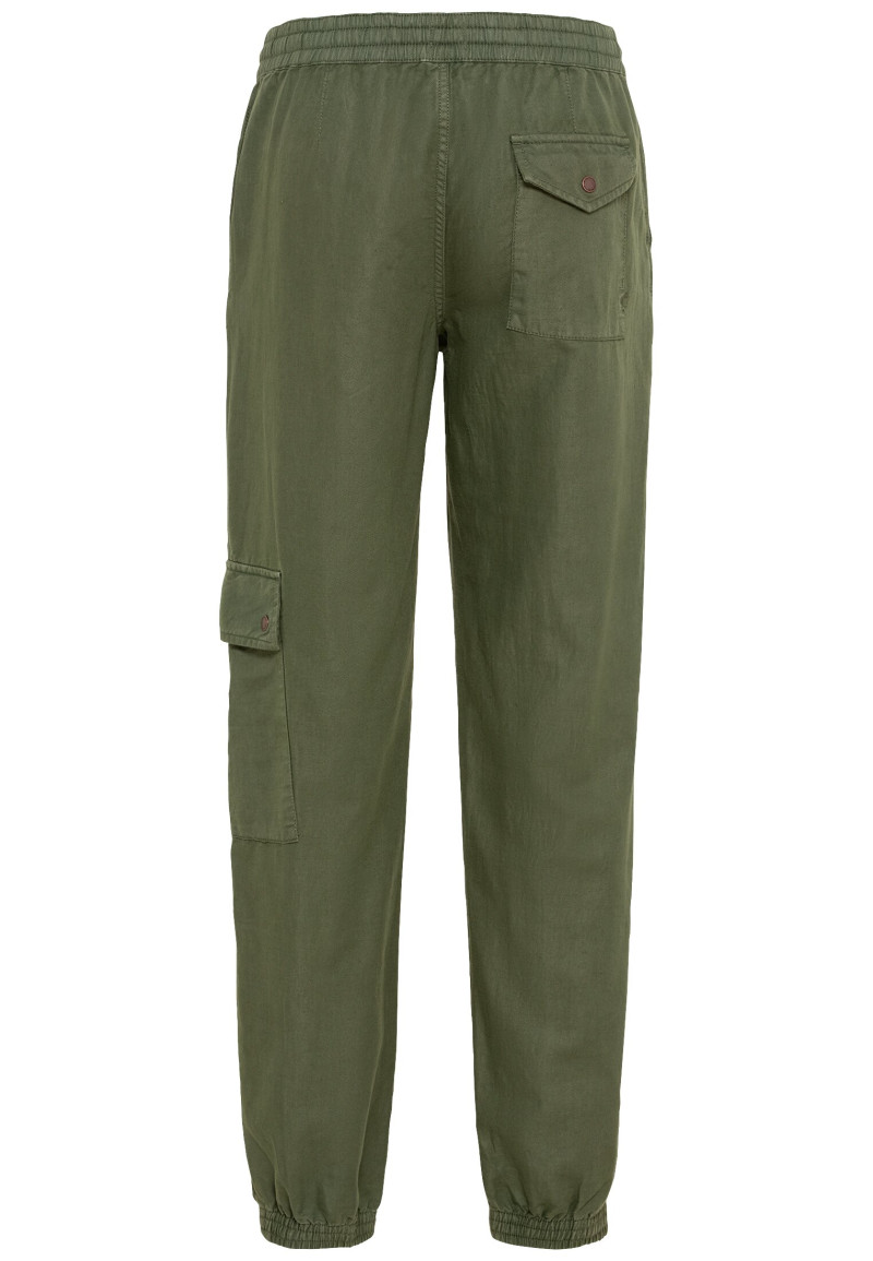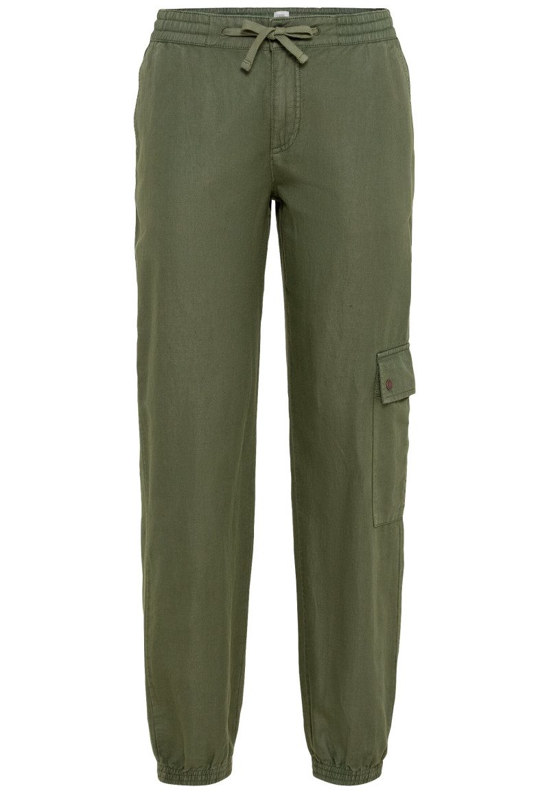 Női vászon nadrág, amely fokozatosan szűkülő szárral és rugalmas szegéllyel van ellátva. A rugalmas derékszíj húzózsinórral van kiegészítve, amely lehetővé teszi a darab esetleges összehúzását. Egy nagy oldalsó zsebbel, hajtókával és patentos záródással. A kiváló minőségű anyagösszetétel kellemesen hűsítő hatást kelt, könnyű és nagyon kényelmes viseletet biztosít. Az anyagösszetétel exkluzív tulajdonságait különösen a forró nyári időben fogja majd értékelni. Ideális alapja a nyári szabadidős öltözéknek, amely ruhatárának elengedhetetlen részévé válik majd.
